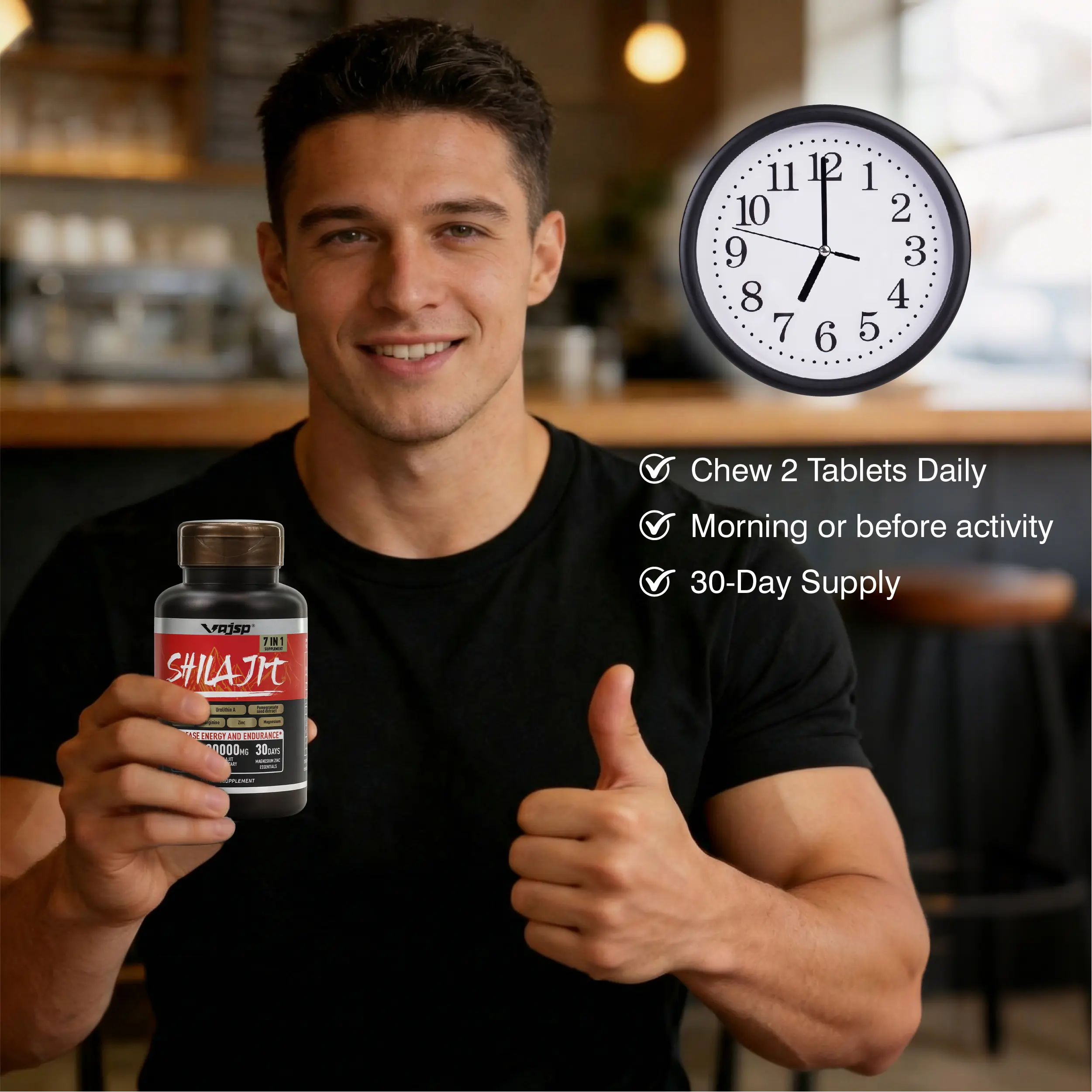 Chew 2 tablets daily, preferably in the morning or before activity.