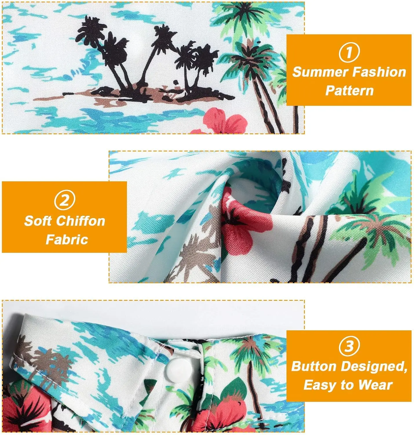 Comfortable and Breathable: made of soft chiffon fabric, the dog Hawaiian t-shirt is soft and breathable to wear, giving your pets cool and comfortable wearing experience, and the lightweight fabric is suitable for summer, allowing your dog to move relaxedly