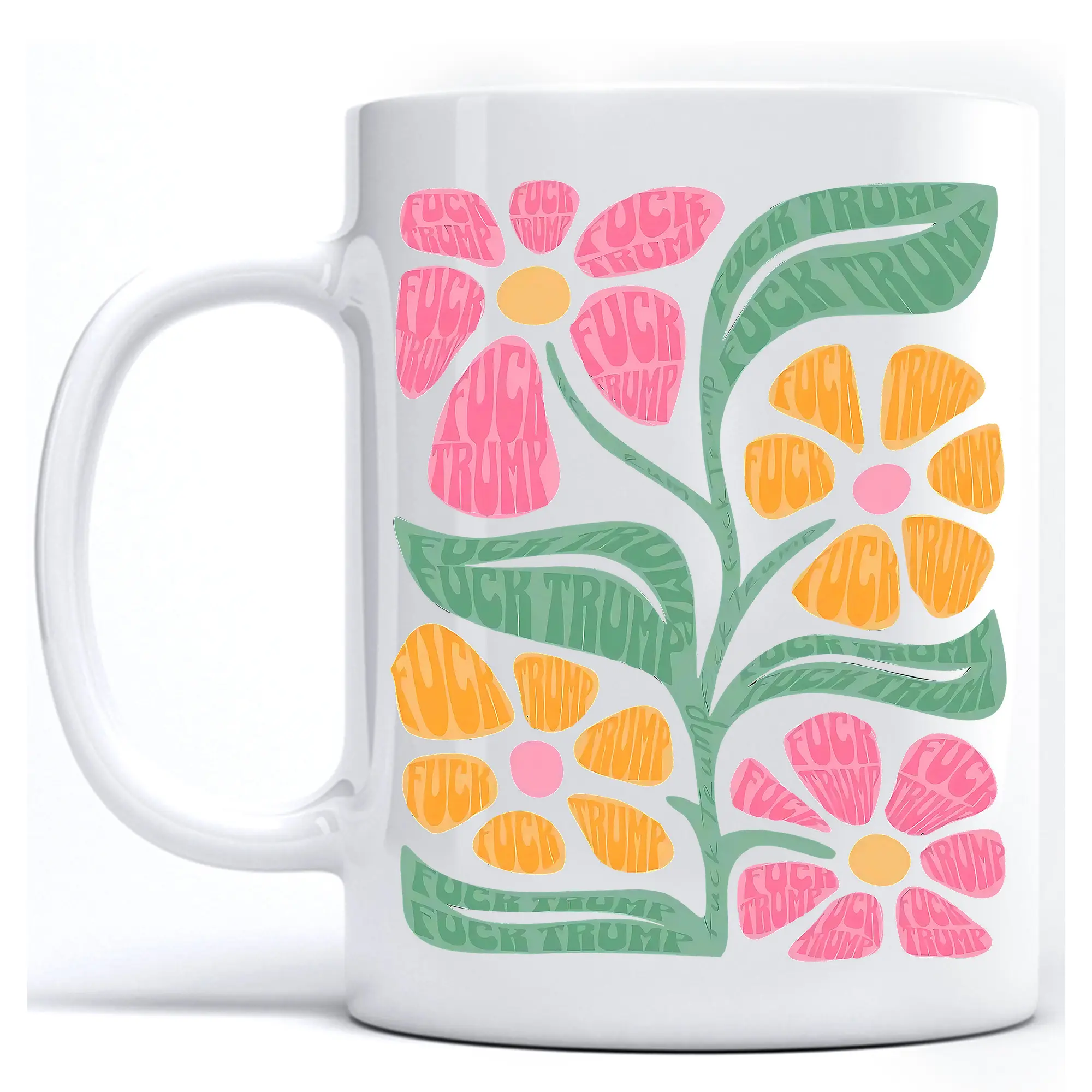 Subtle FDT Trump Flower Coffee Mug, Anti Trump Floral Cup Gift for Democrat, I Hate Trump Progressive Liberal Flower Ceramic Drinkup Cups