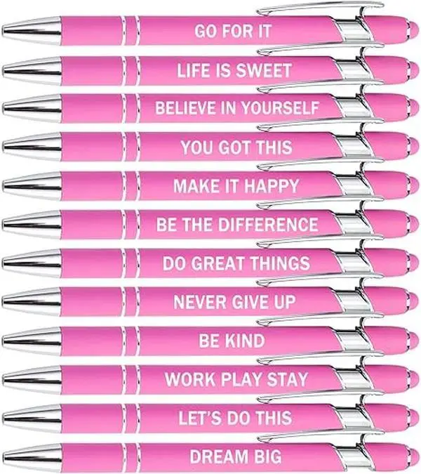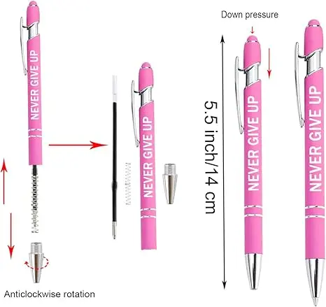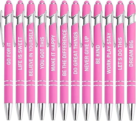 Β·γSensitive and Smoothγ Our funny quote ballpoint pens have a soft rubber stylus tip that glides smoothly on most touch screens, as sensitive as a finger. The ink on the refill is black, ensuring clear and legible writing.
