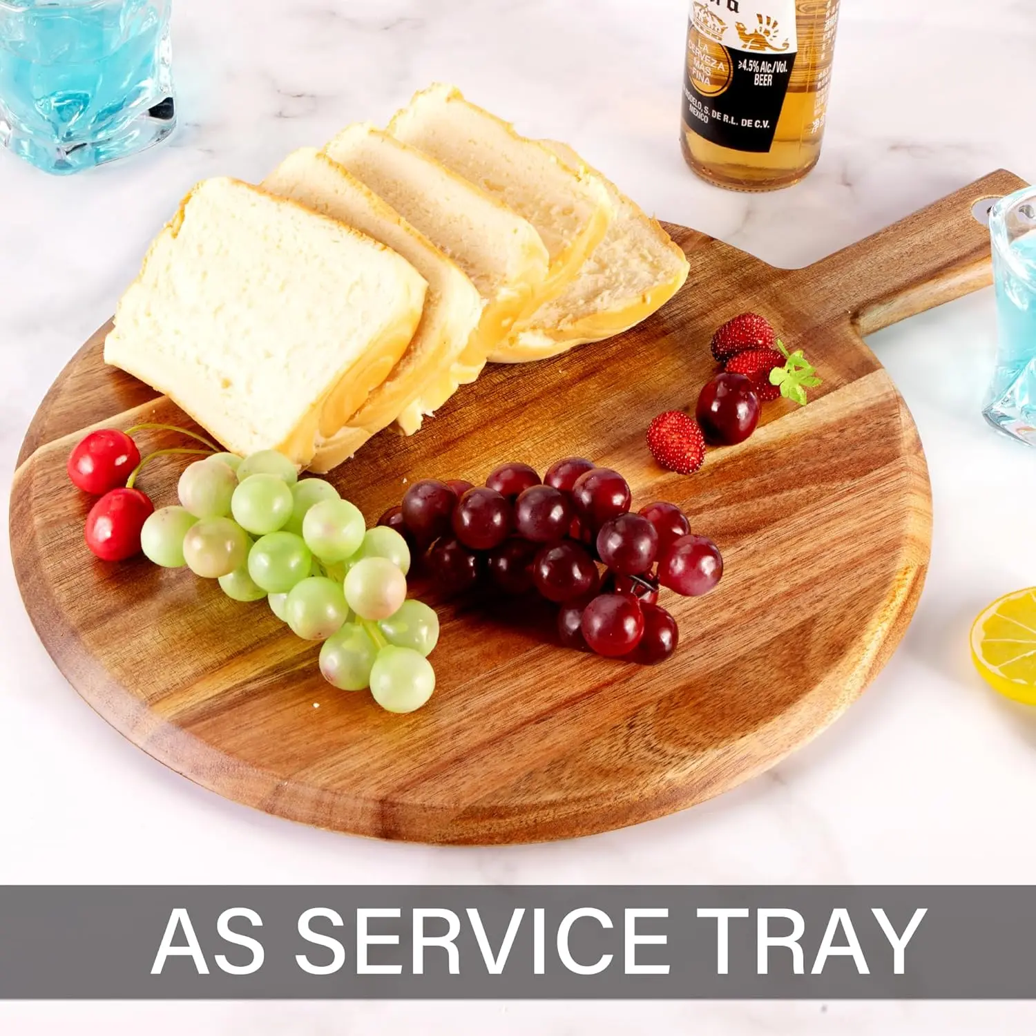 【Premium Acacia Wood】Crafted from high-quality Acacia wood, our pizza board ensures durability and a natural, rustic charm. Pizza board showcases the unique grain pattern and warm tones of acacia wood, adding a touch of elegance to your culinary presentations.