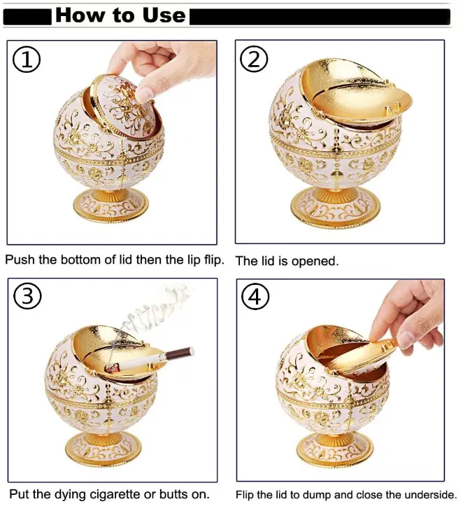 Use method: Push down ashtray, the lid stop ash going out and less smoke circulating, reduce smell for your space.