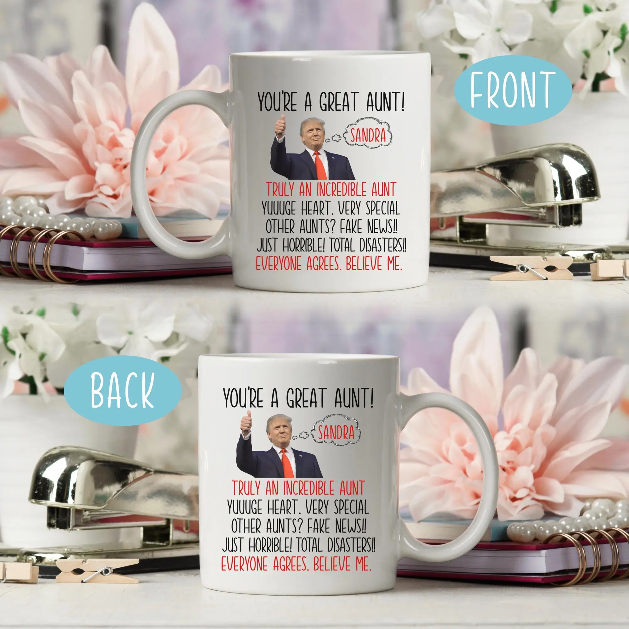 Funny Custom Aunt Trump Mug Best Aunt Ever Gift Funny Gifts to Aunt From Niece Nephew Aunt Coffee Cup Christmas Gift Him Trump humor Mug