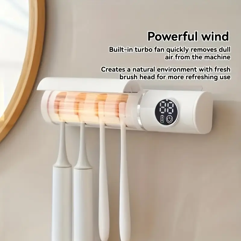 [Smart UV Toothbrush Sanitizer] 1pc Automatic Dual Sterilizer Smart UV Toothbrush Sanitizer - Wall-Mounted with Power Display, Rechargeable 1200mAh Lithium Polymer Battery, USB Charging, ≤36V for Bathroom Use