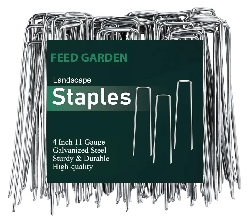·【PACKAGE INCLUDED and SIZE】The 11 gauge 50 Pack landscape fabric staples are 4 inches long, the top width is 1 inch, the width below is 1.5 inch. This heavy duty and adjustable garden stakes can hold a variety of garden and landscape objects.