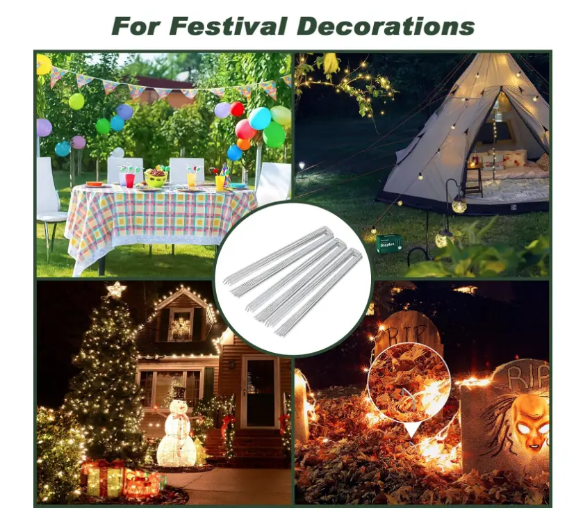 ·【MULTI PURPOSE】A very useful tool for outdoor activities. It can be used for landscape fabric, garden hose, Christmas lights stakes, yard, garden, lawn. Help you to fence in dogs, squirrels, rabbits. Help you to fix edging,plant roots, weed barrier landscape fabric or plastic, fences, hoses to keep your garden clean and tidy.