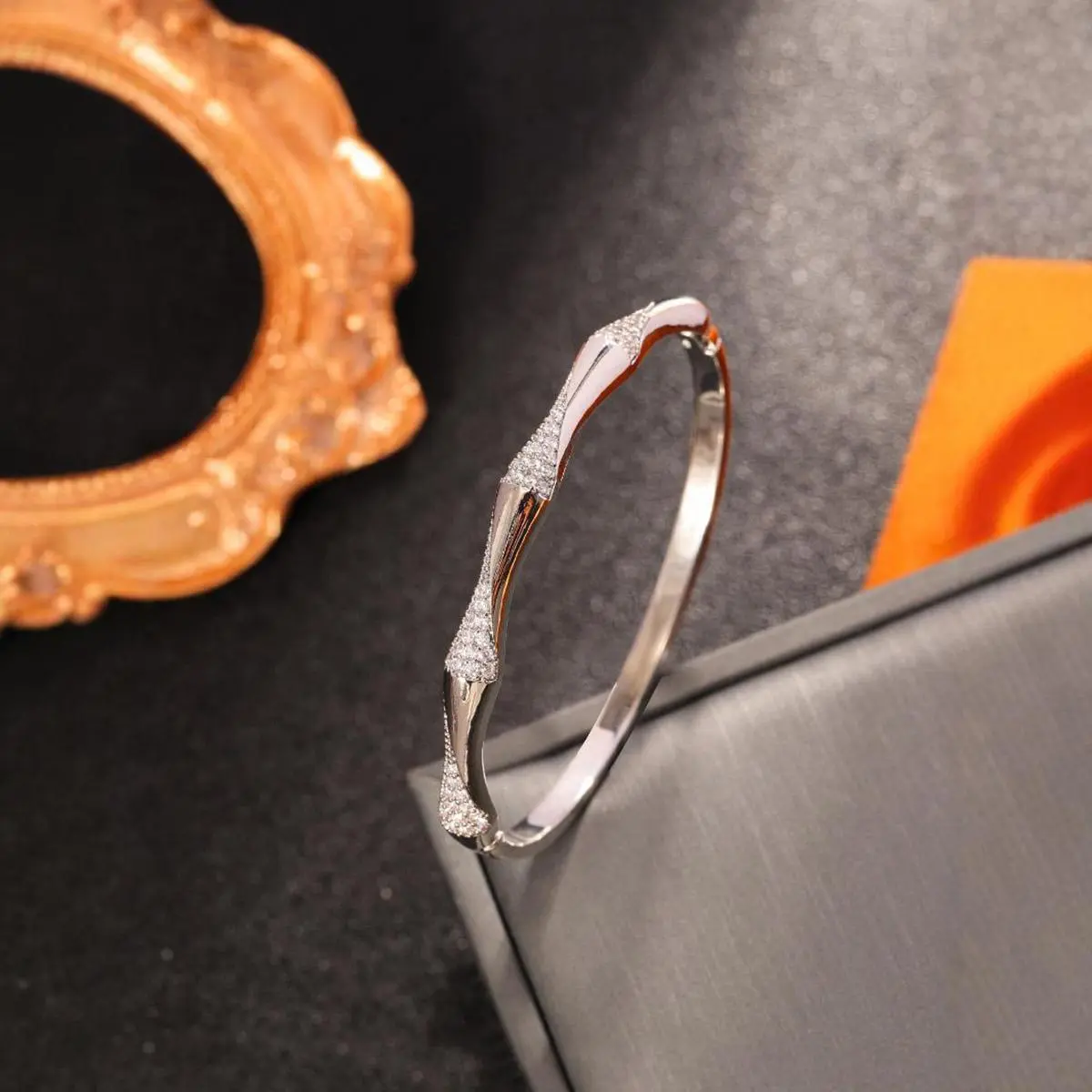 A 925 silver geometric bracelet inset with shiny synthetic zircon temperament elegant ladies high quality jewelry bracelet to send a lover