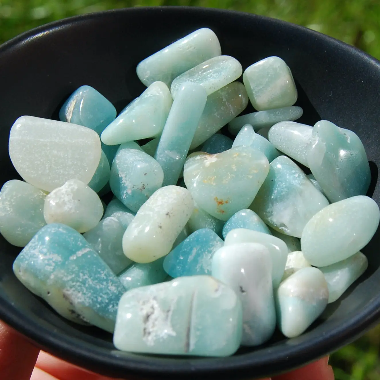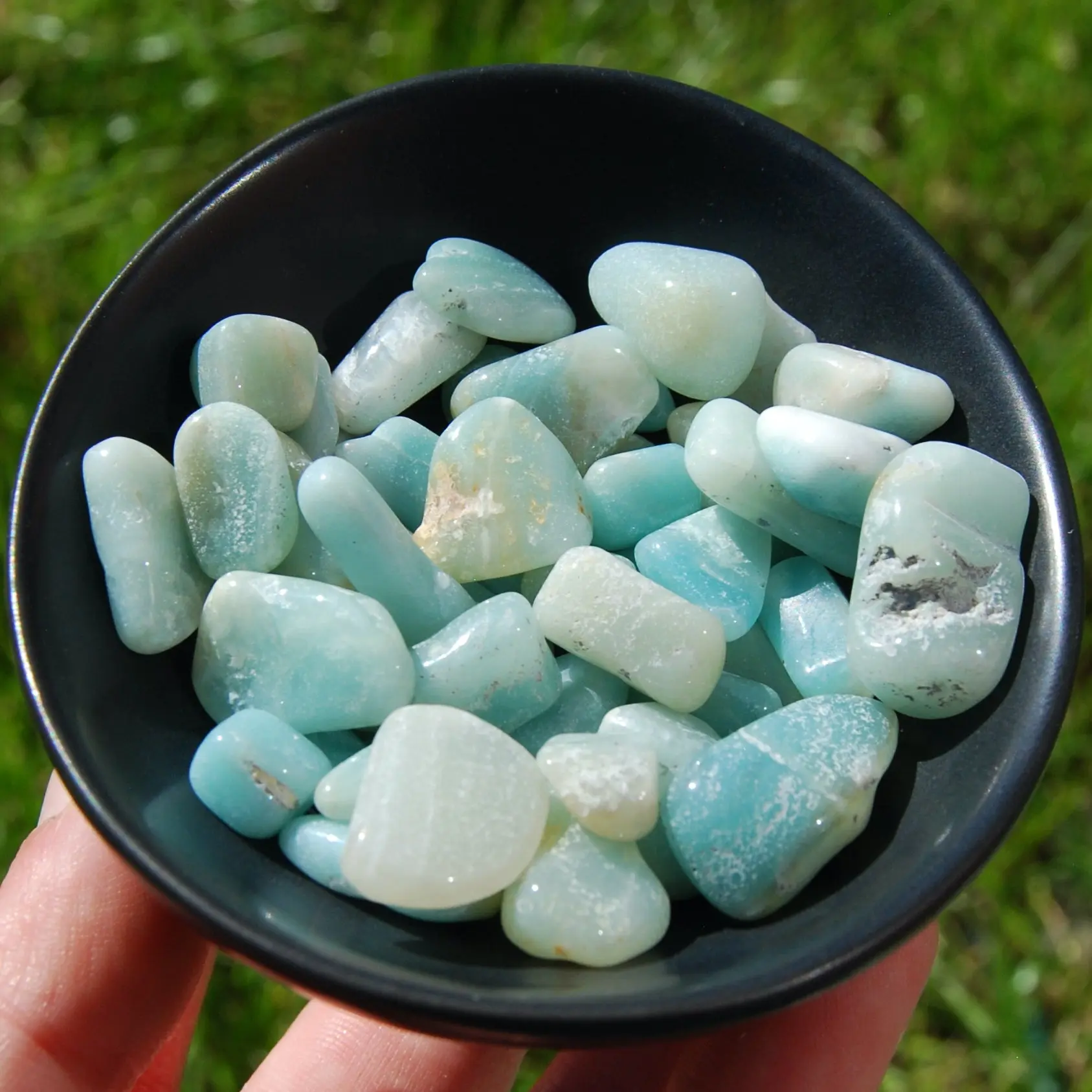 For your consideration are these beautiful Amazonite small tumbled stones from Madagascar. These measure approximately .5 to 1 inch long. These are perfect for crystal grids.