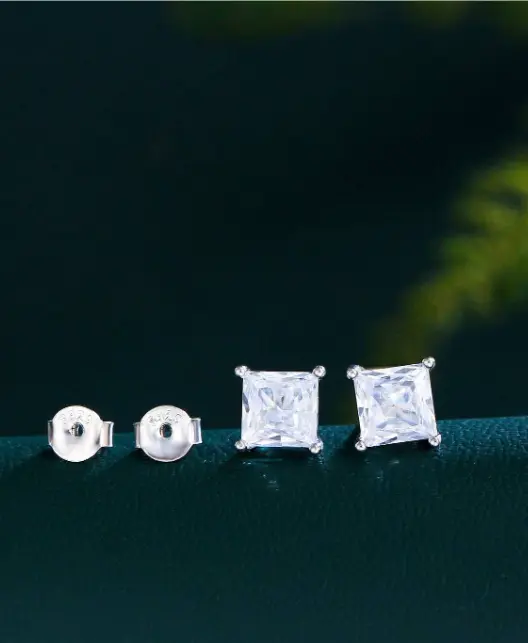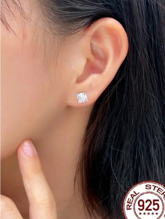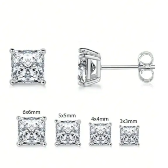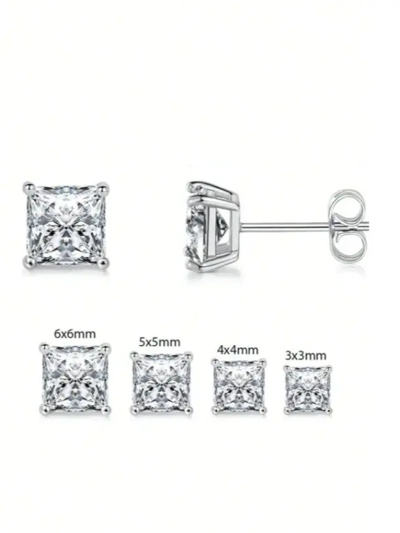 1 Pair Princess Cut 5A Cubic Zirconia Square Stud Earrings – 925 Sterling Silver, Elegant Jewelry for Women & Girls, Perfect Gift