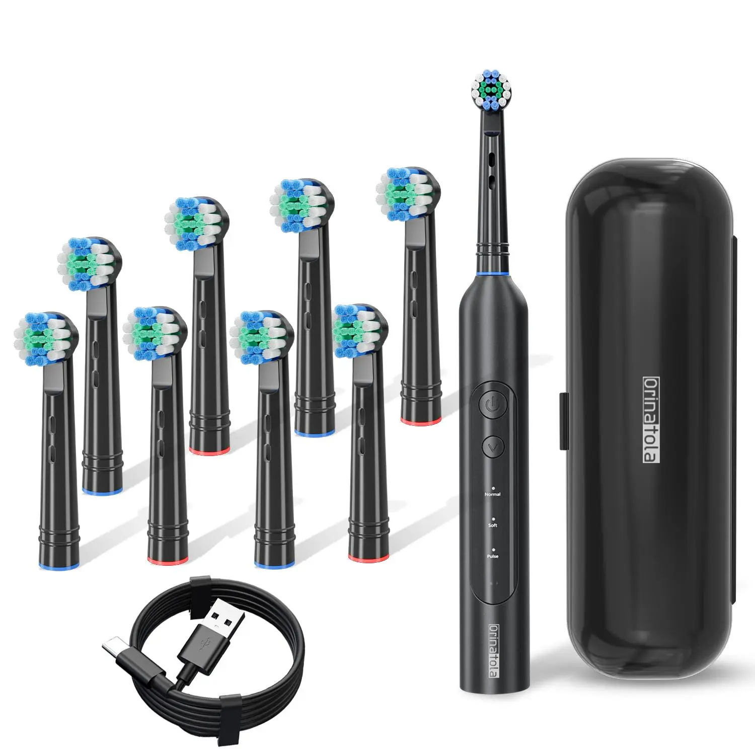 Electric Toothbrush with 8 Counts Brush Heads, 1 Box USB Rechargeable Waterproof Rotating Toothbrush with 3 Cleaning Modes, Oral Care Product for Adults