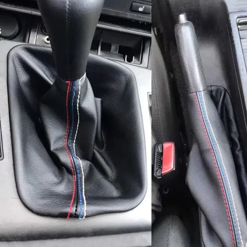 Car Shift Gear Stick Dust-proof Cover, 2 Counts/set Handbrake Handle Faux Leather Cover, Universal Car Interior Accessories for BMW E30 E36 E34 E46 Z3 Manual Models