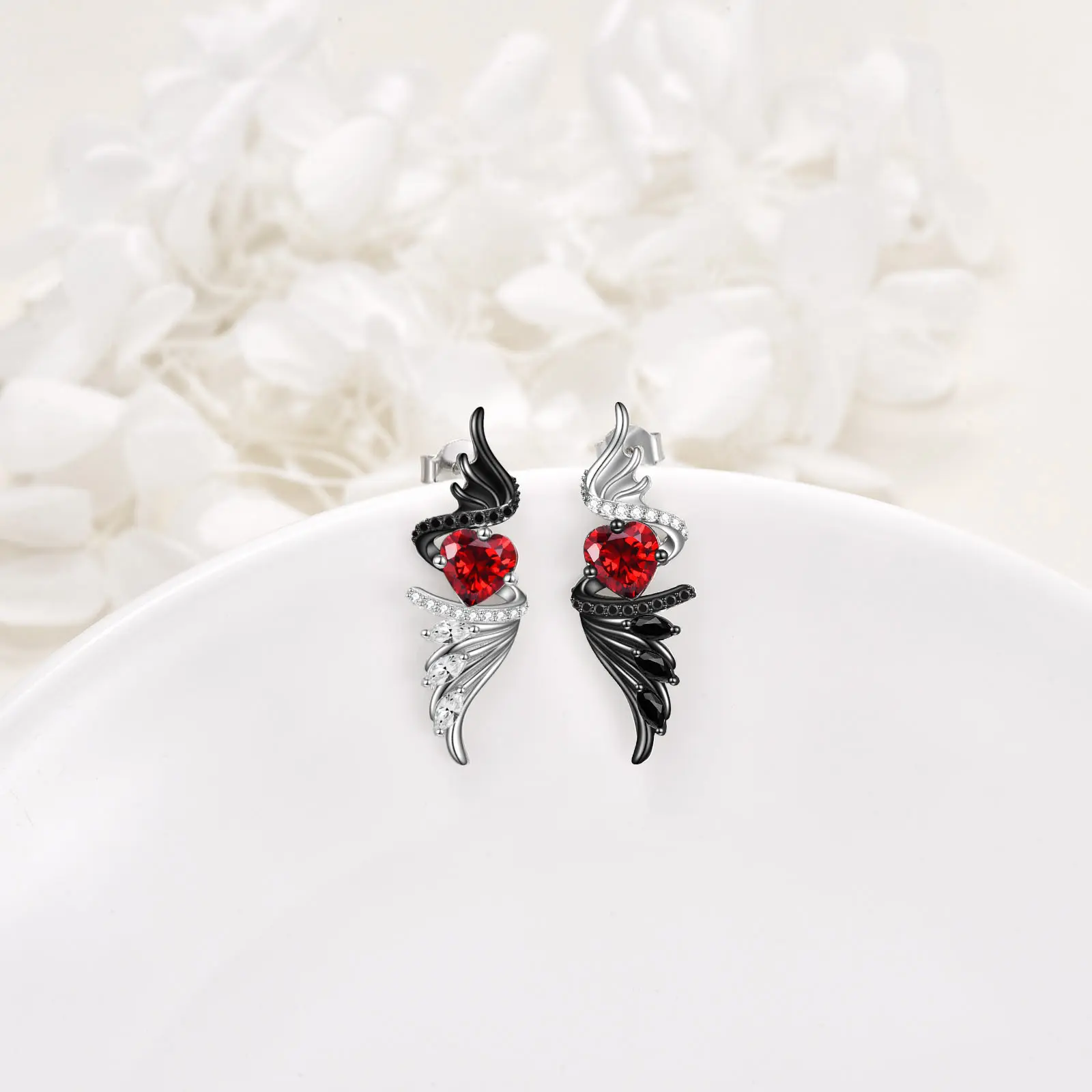 925 Sterling Silver Garnet Angel Wing Punk Silver Black Earrings Gift for Her mystery jewlery girl