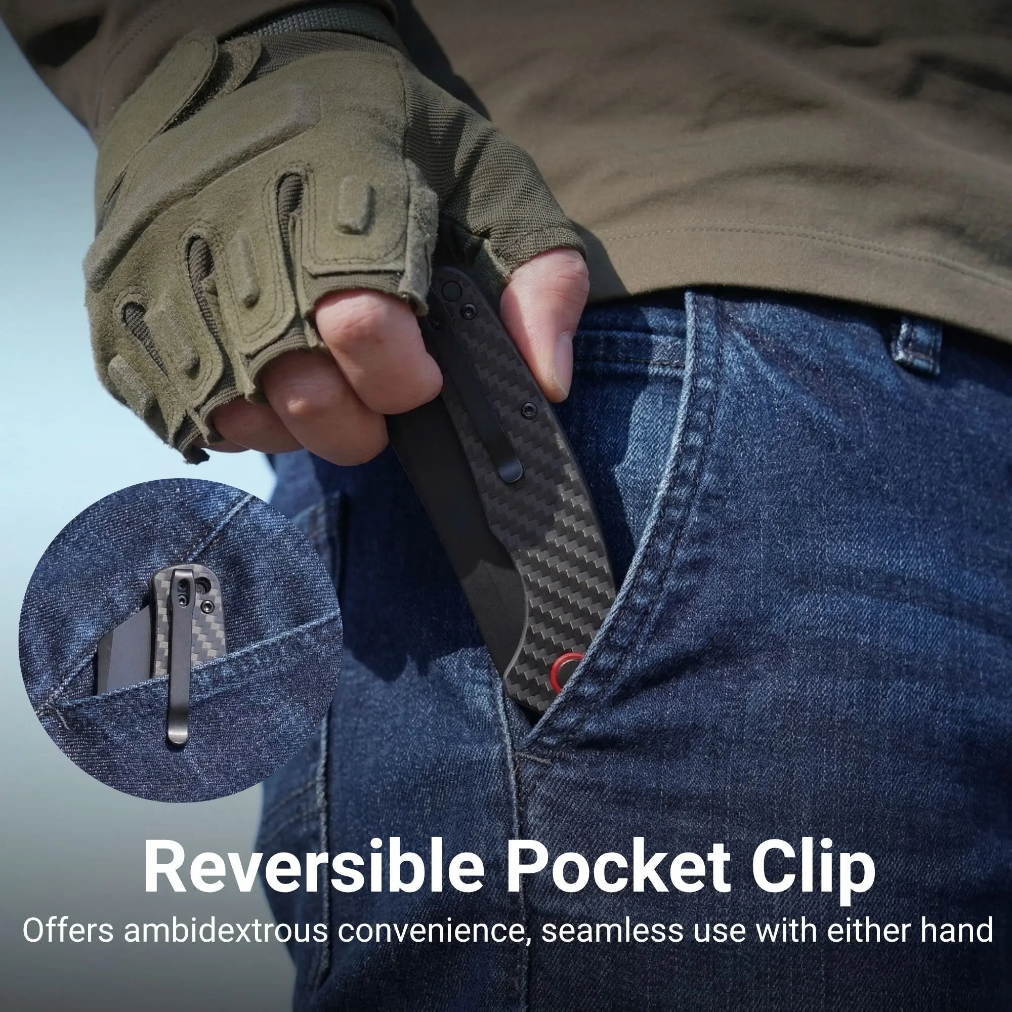 Great size, nice weight. Handle size just perfect and the carbon fiber looks awesome. And yes has the pocket clip!👍🏼🤙🏼