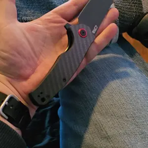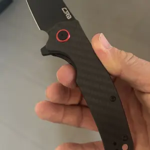 Stellar finish on the carbon fiber looks and feels great in the hand. Solid weighty performance with easily deployed blade that locks and clicks into place with a smooth glide to its resting point. This knife really is engineered well. One of my favorites instantly. Damascus is next