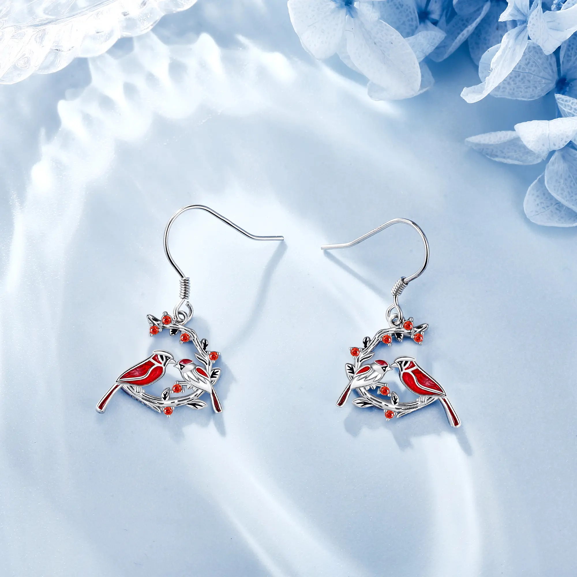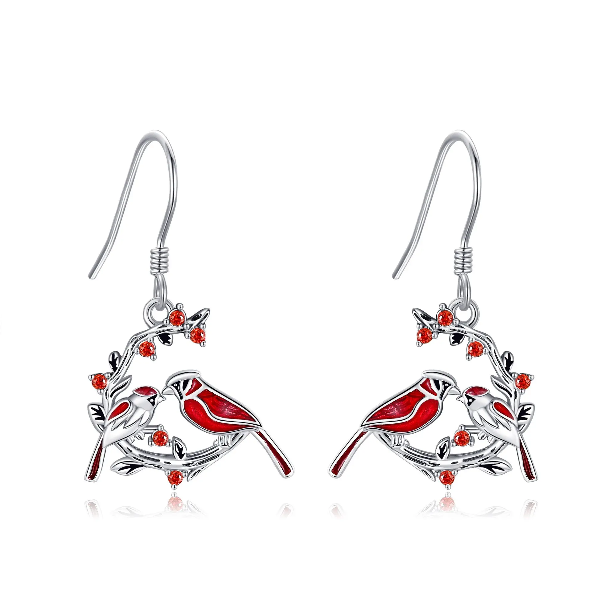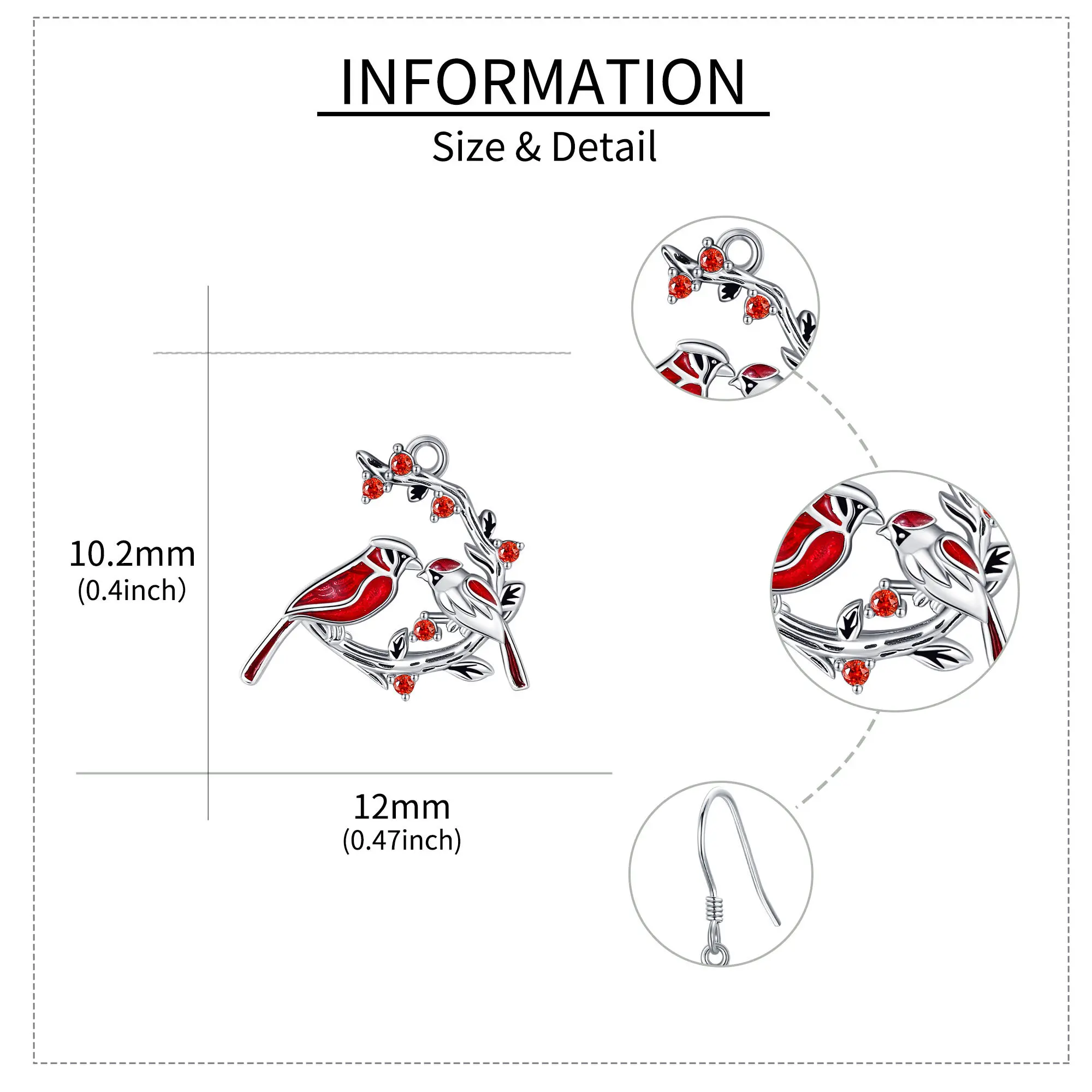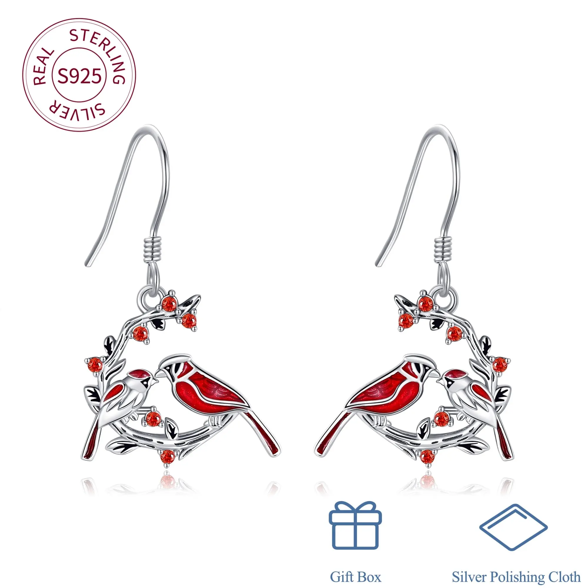 925 Sterling Silver Cardinal Earrings for Women Garnet Hypoallergenic Jewelry Gift for Mom