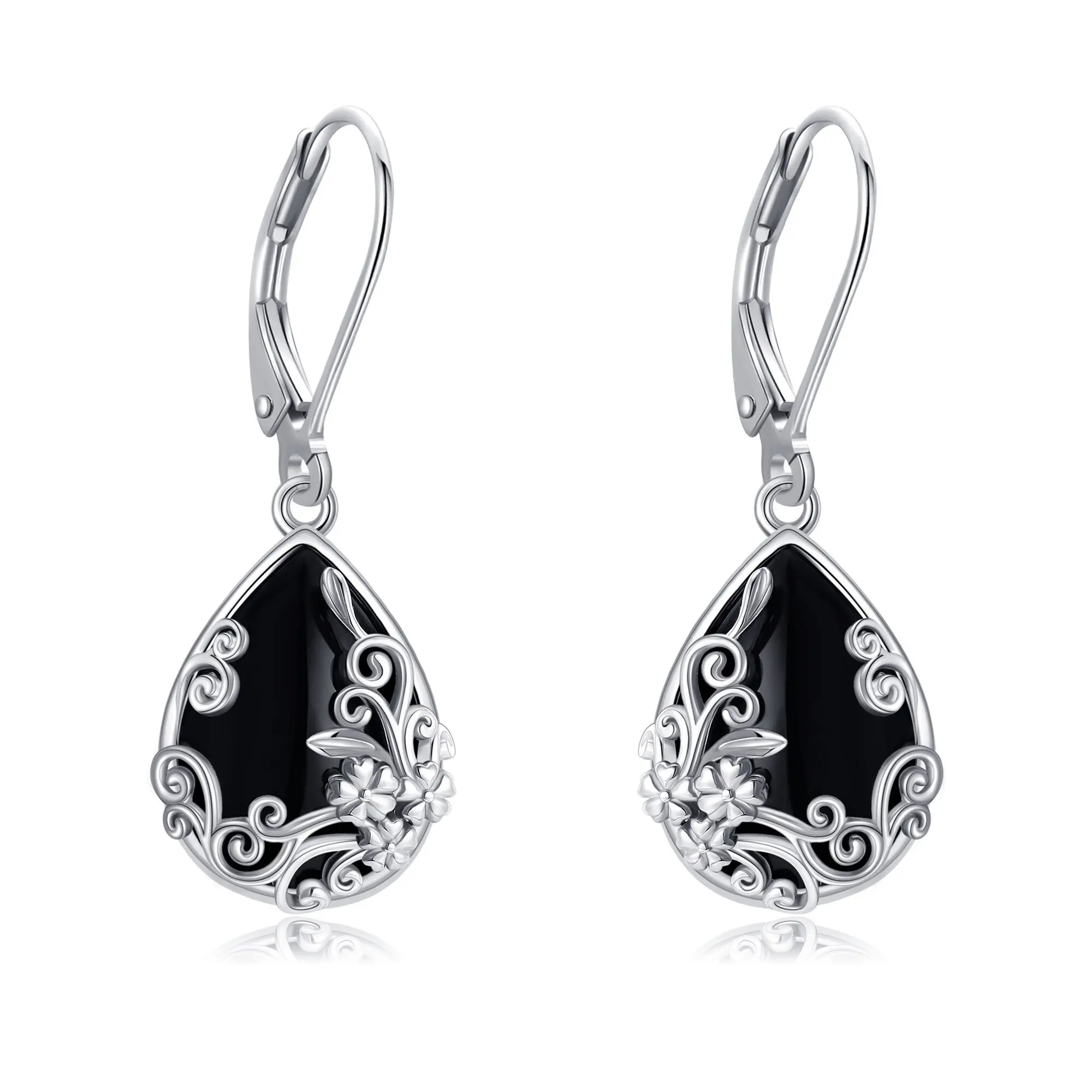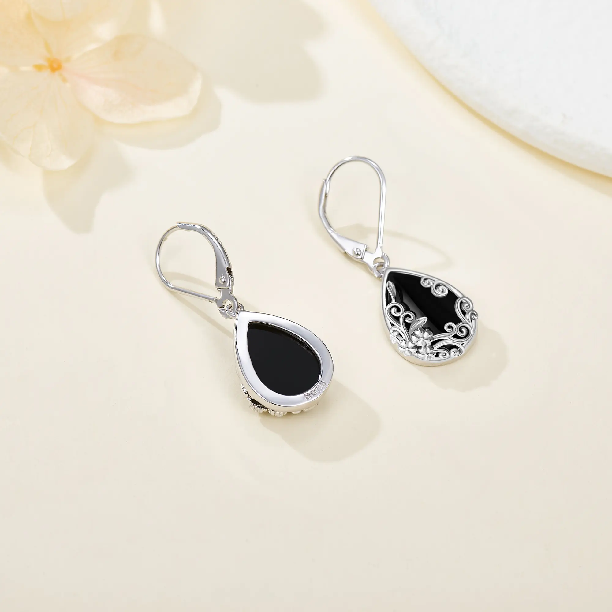 Make a statement with these beautiful 925 Sterling Silver Black Agate Flower Earrings, designed for women as a special gift. The intricate flower design paired with black agate stones adds a touch of elegance and sophistication to any outfit. Ideal for adding a unique and stylish flair to her ensemble.
