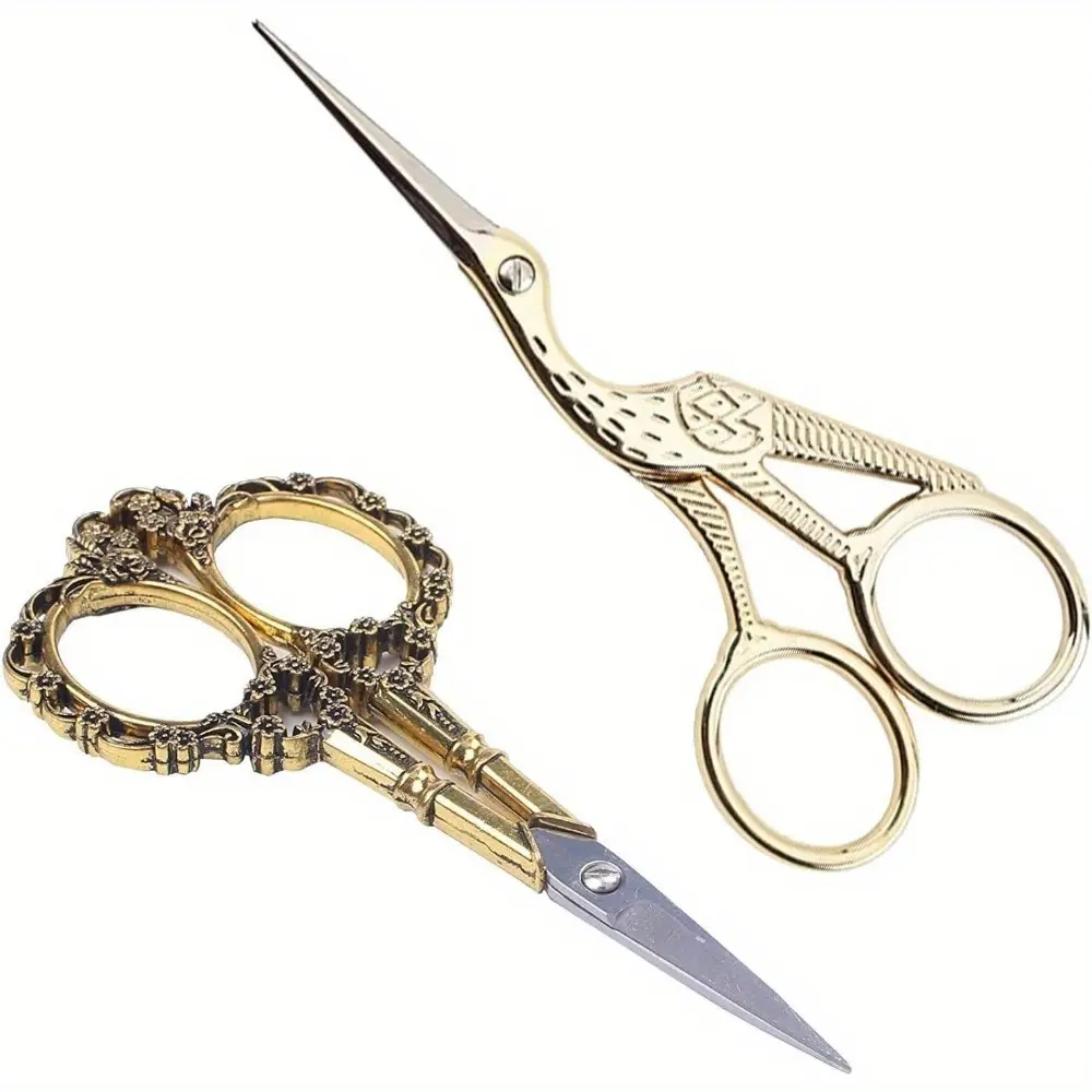 2pcs Vintage Plum Blossom Scissors and Classic Crane Design Sewing Scissors for Embroidery, Sewing, Craft, Art Work & Everyday Use, Office Cutting Supplies