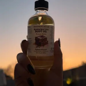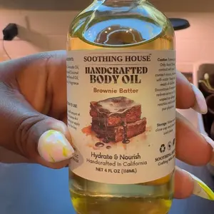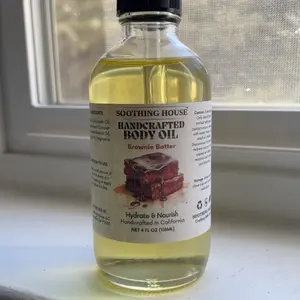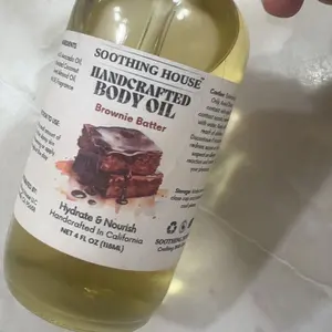Treat your skin to the ultimate hydration with our Handcrafted Brownie Batter Body Oil. This lightweight, fast-absorbing formula nourishes deeply while leaving behind a warm, dark chocolate, creamy butter, brown sugar, and a hint of vanilla scent that lingers. Perfect for body, skin, hair, and cuticles, it delivers all-day moisture with a silky-smooth finish.