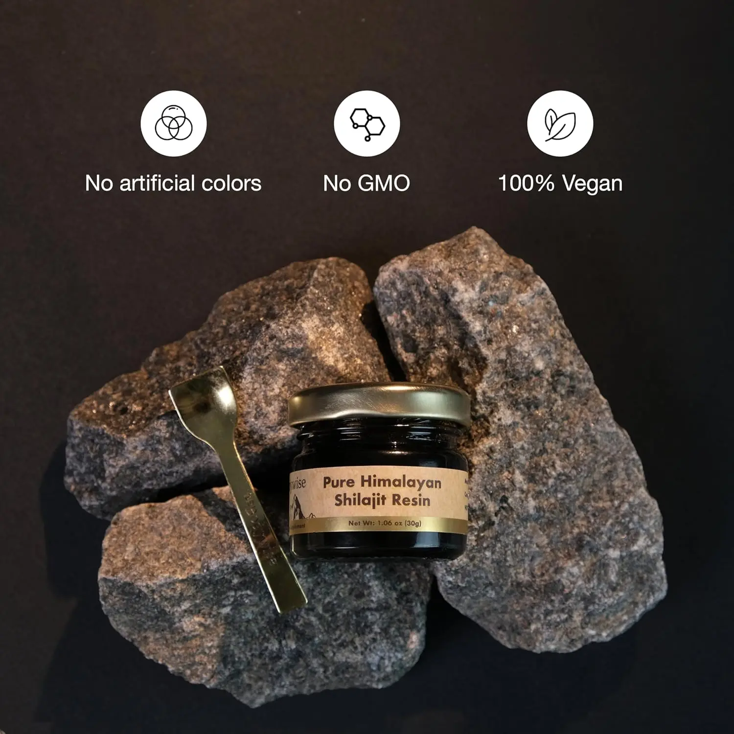 ·HOW TO USE: Take a pea sized ball and mix our pure Shilajit Resin with lukewarm water, milk, tea or beverage of choice. Mix until the resin dissolves in the liquid completely. Drink the dissolved liquid once or twice a day or as directed by the physician.