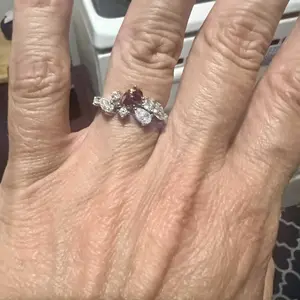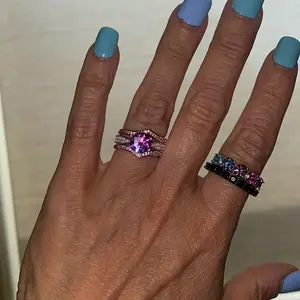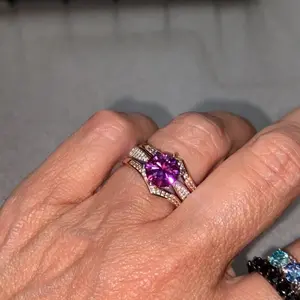 Beautiful solitaire ring in dragon fruit color. Size 7 fit perfectly and can be stacked with other rings. Very sparkly!