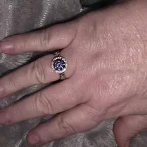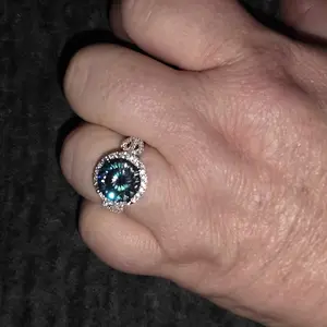Beautiful 3ct peacock blue 100 flower cut stone ring.