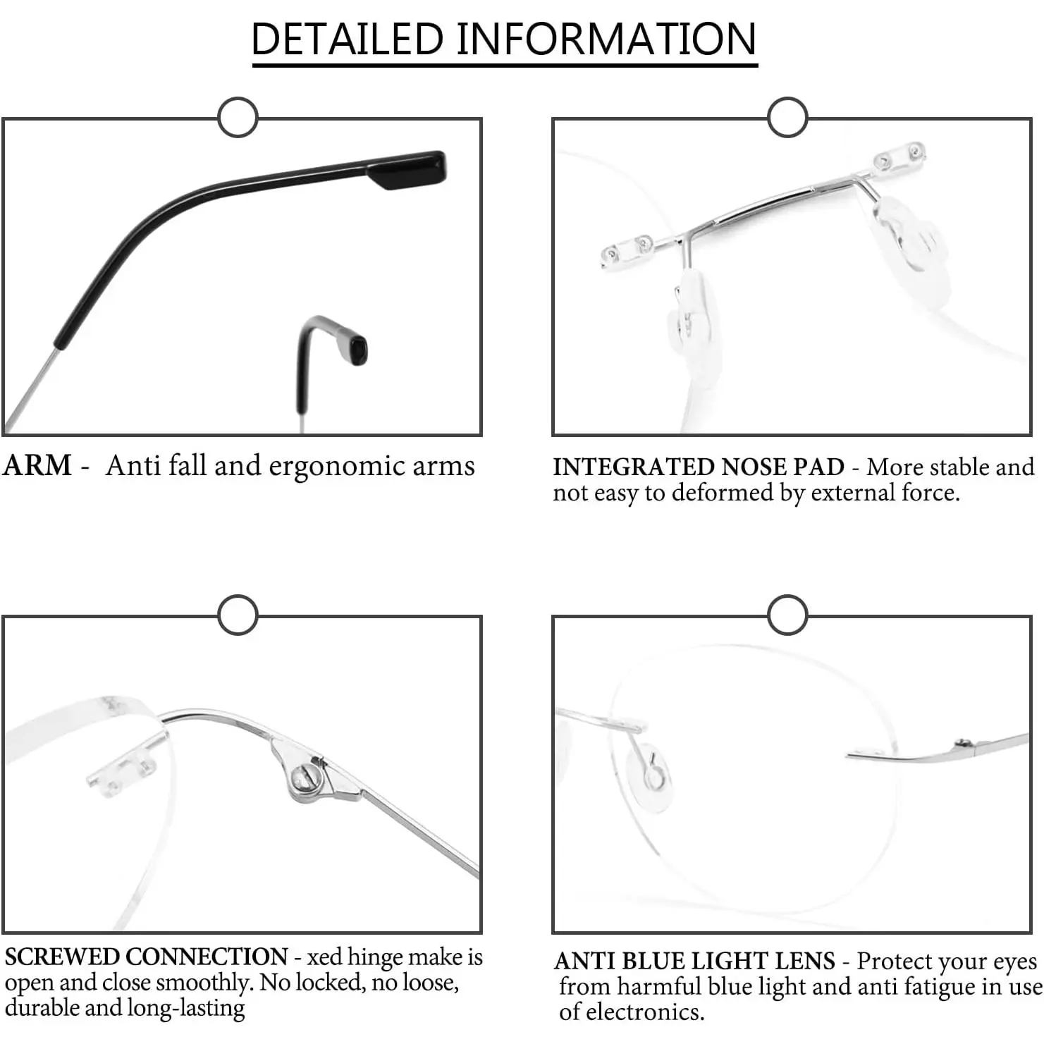 Round rimless reading glasses super light titanium alloy Reader for men and womenRound rimless reading glasses super light titanium alloy Reader for men and women