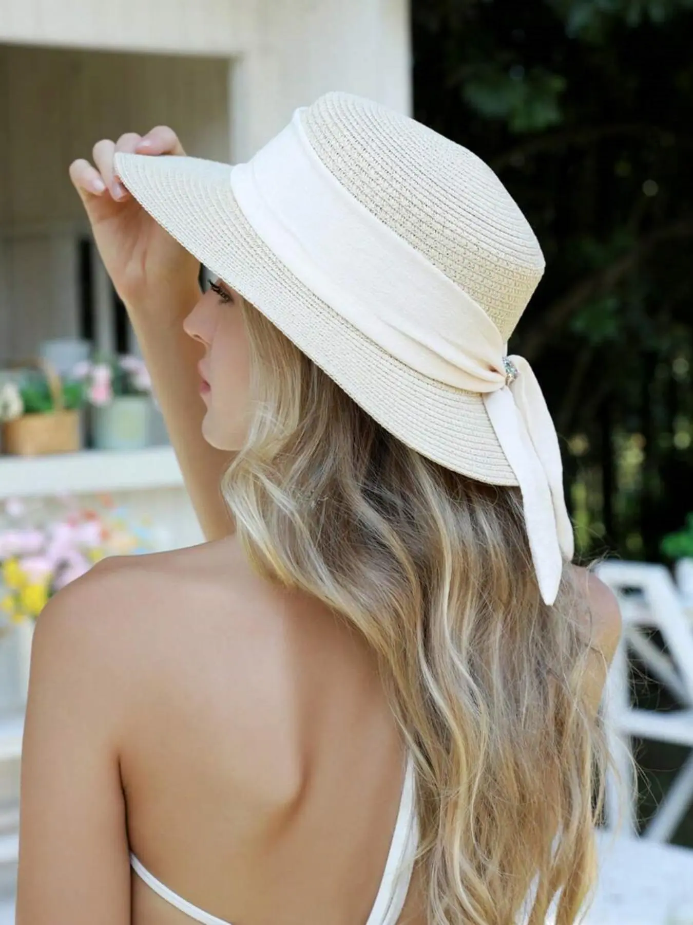 Women's Sun Hat, Foldable Wide Brim Straw Hat, Casual Sun Protection Beach Hat for Women & Girls, Fashion Accessories for Traveling & Beach Party