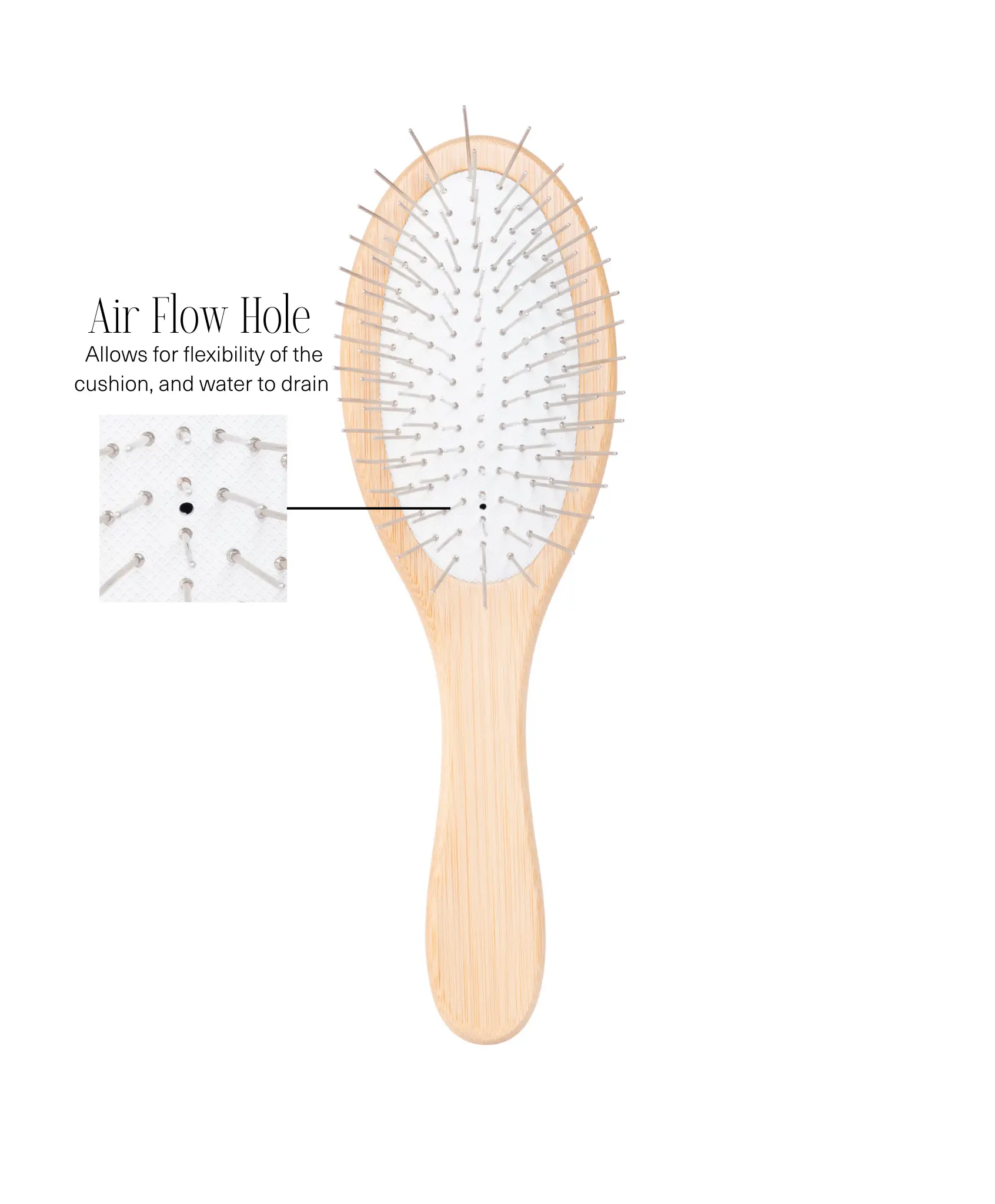 ·Flexible Cushion with Airflow Hole: The flexible cushion pad with an airflow hole adjusts to your head with each stroke, providing a comfortable and effective detangling experience.