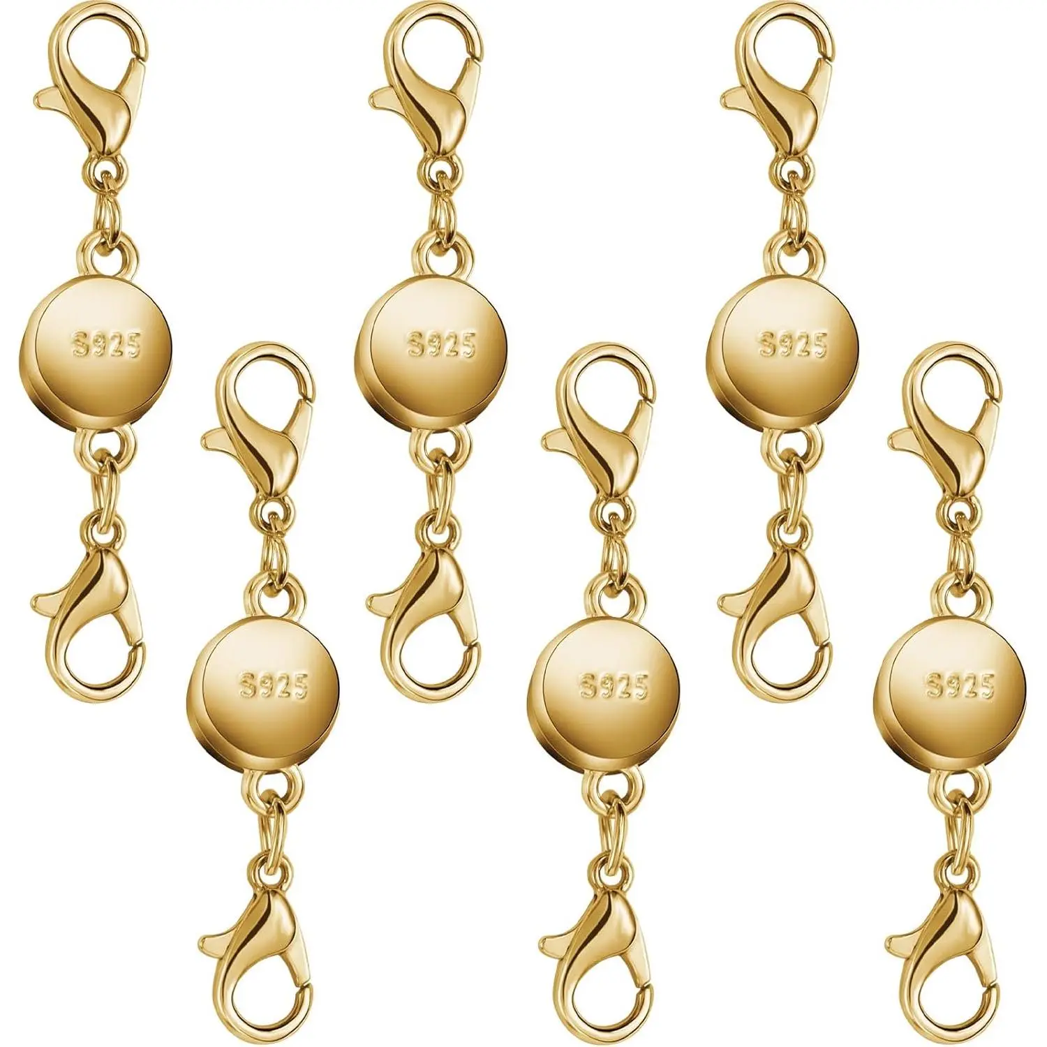 Enhance your jewelry-making projects with these versatile magnetic necklace clasps and closures. Crafted from high-quality 925 silver and gold-plated materials, these clasps offer a secure and stylish way to fasten necklaces, bracelets, and other jewelry pieces. The round design with a magnetic closure provides a seamless and hassle-free experience when putting on or taking off your accessories. These clasps also double as necklace extenders, allowing you to adjust the length for a perfect fit. With a set of 12 silver and 12 gold clasps, you'll have ample options to match various jewelry designs and metal tones. Elevate your handmade creations with these durable and functional magnetic necklace clasps and closures.