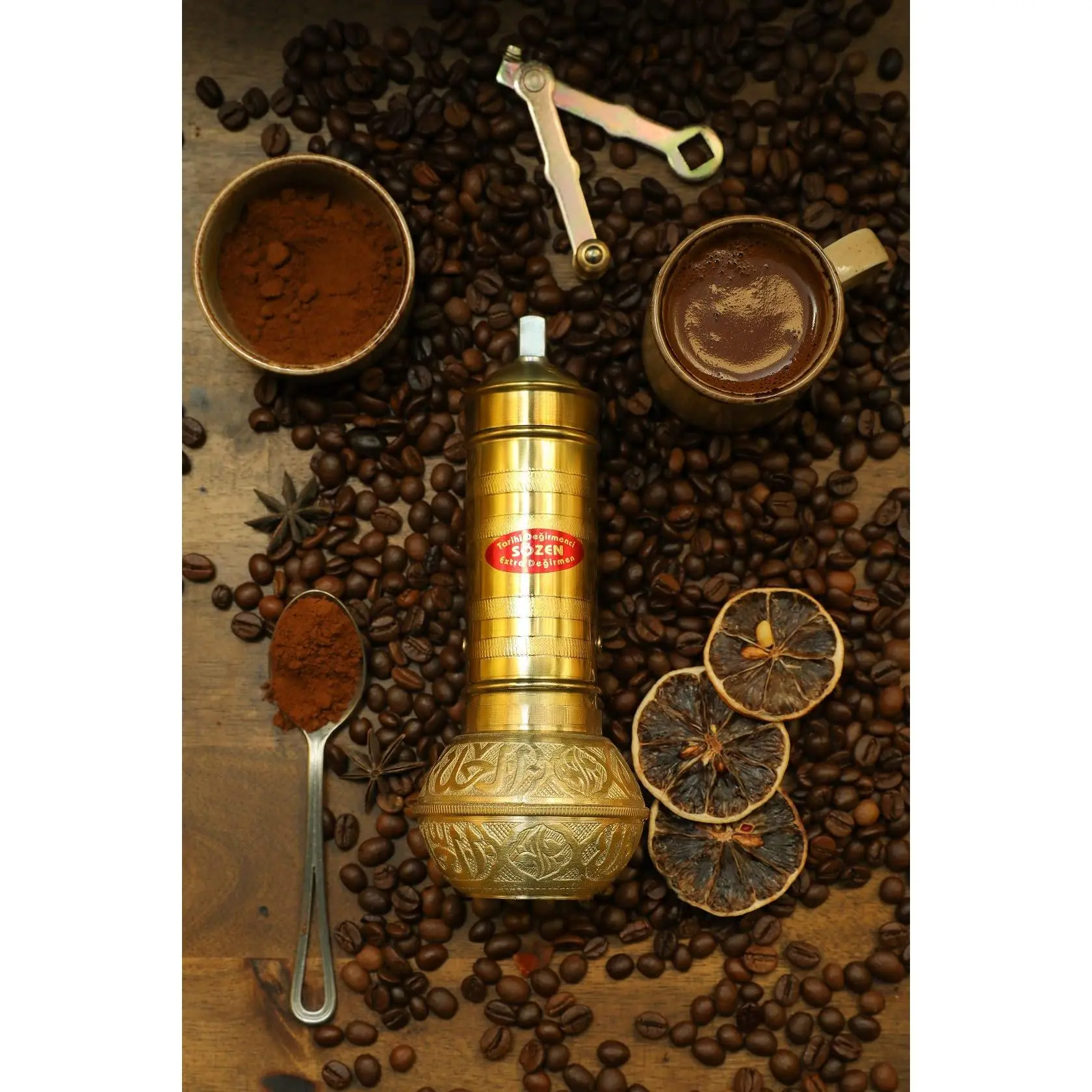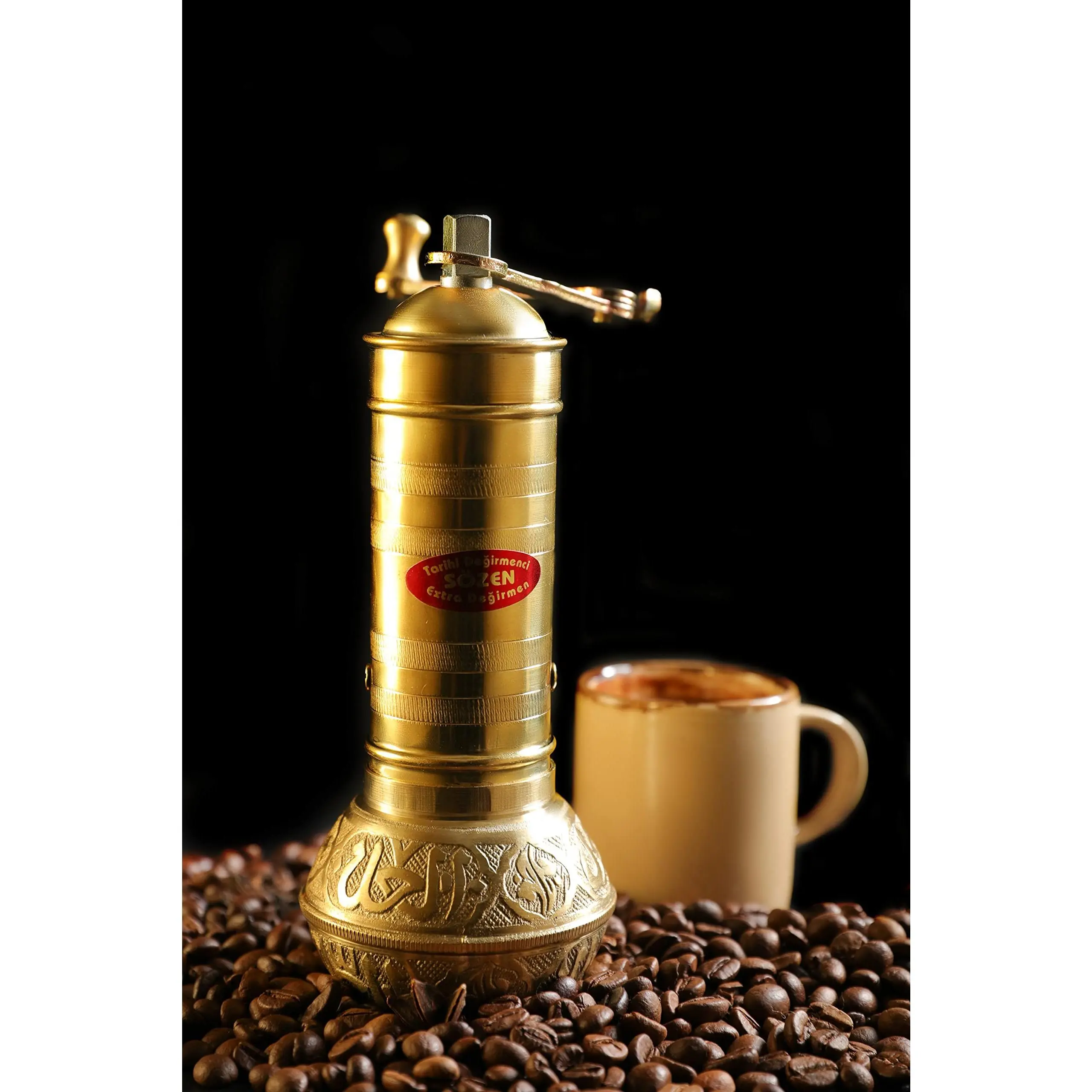 Our manual coffee mill is the ultimate compliment for your kitchen appliance usage. The mill's manual grounding mechanism is designed to maximize the flavor and aroma in your cup of coffee. The set up is simple and the product is very easy to use. Simply rotate the outer knob and yield an incredibly aromatic bean blend for your coffee. Sozen Grinders is a 120 year old Turkish family run business that sells hand-made, manual coffee grinders and mills.