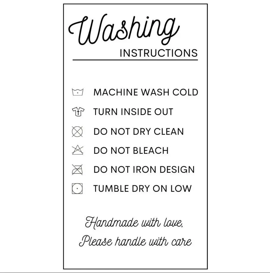 - Do not iron; Do not dry clean