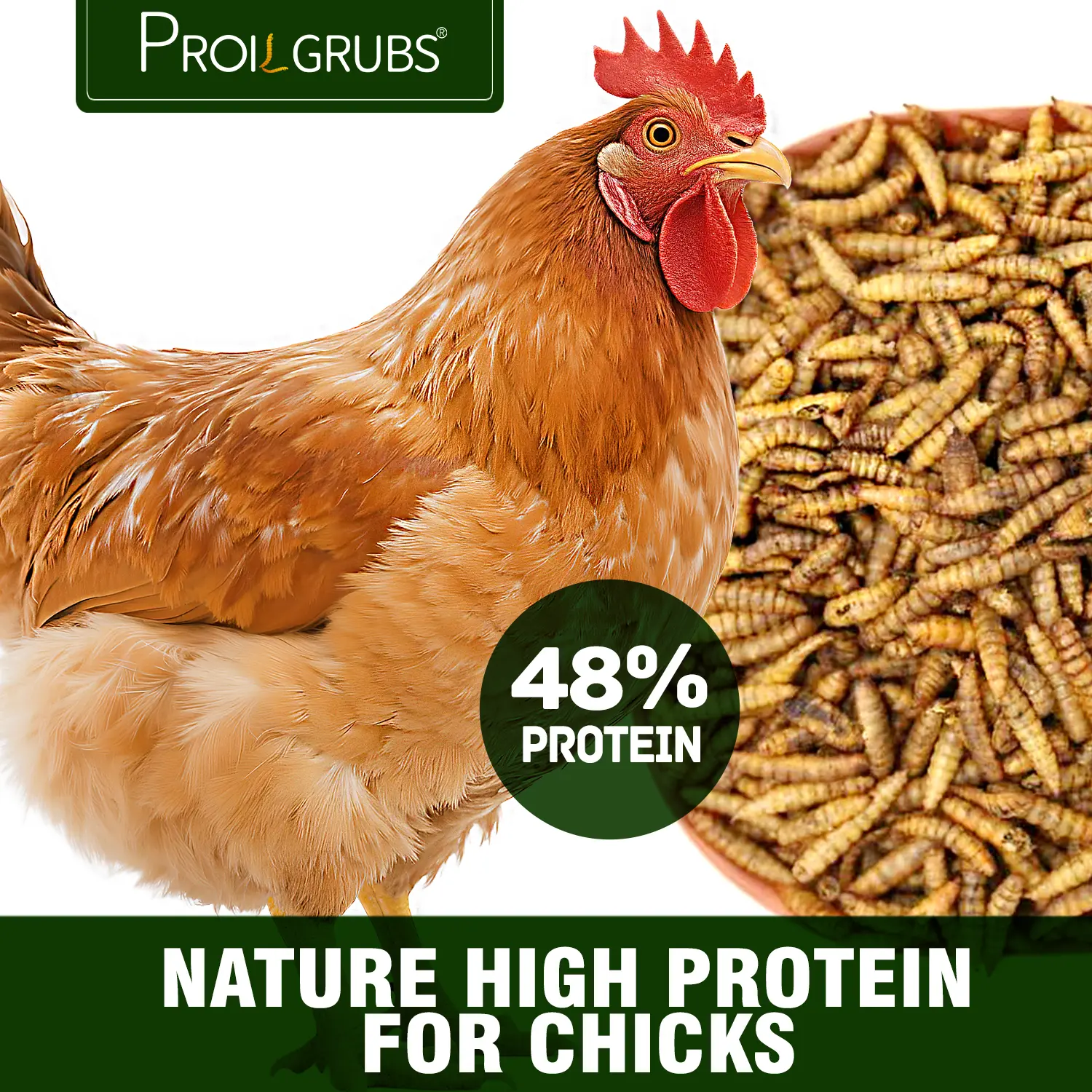 ·Natural: Insects are the natural component of the diets of foraging birds like chickens, birds, turkeys, and ducks. Proilgrubs also has the benefit of wild birds.