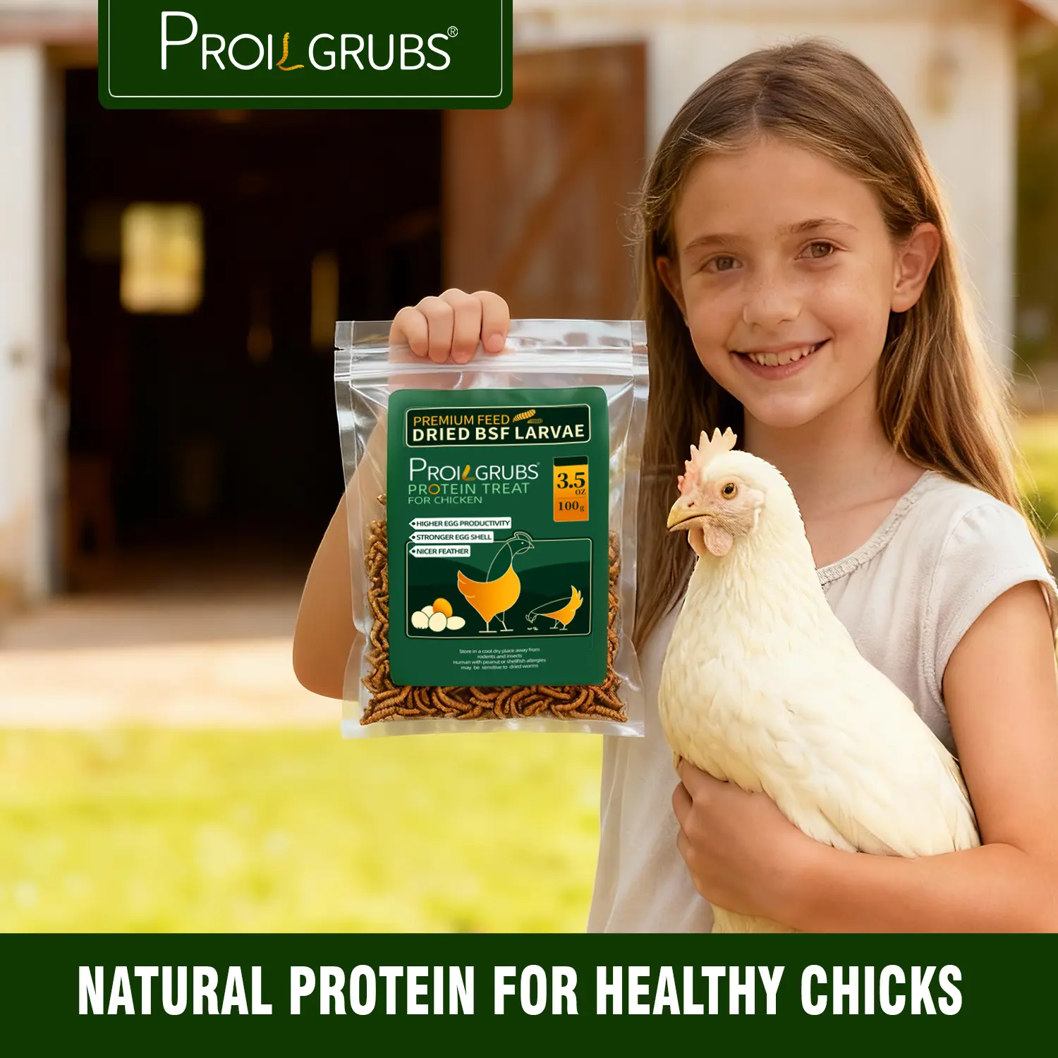 PROILGRUBS Dried Black Soldier Fly Larvae 3.5oz Protein Treat for Chickens