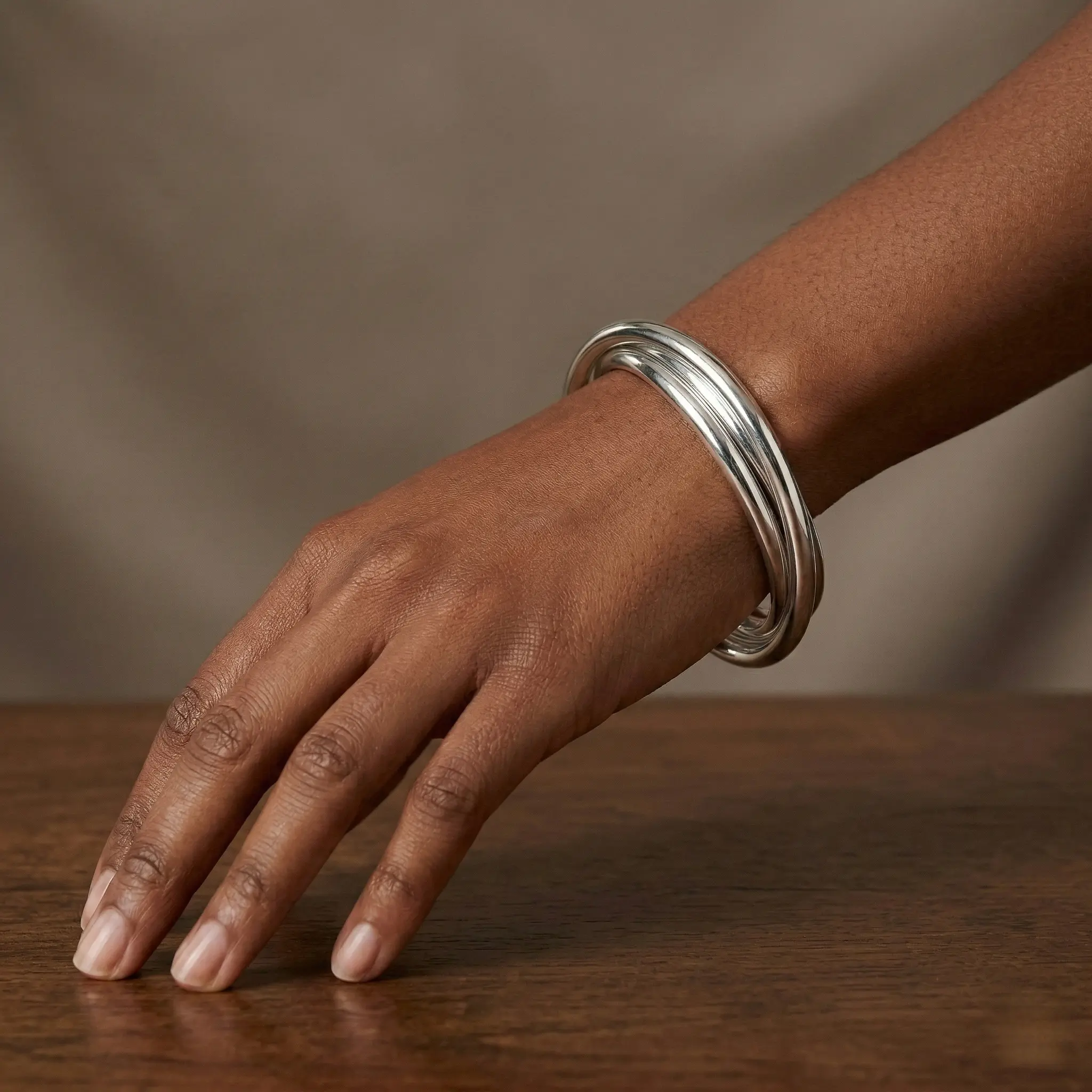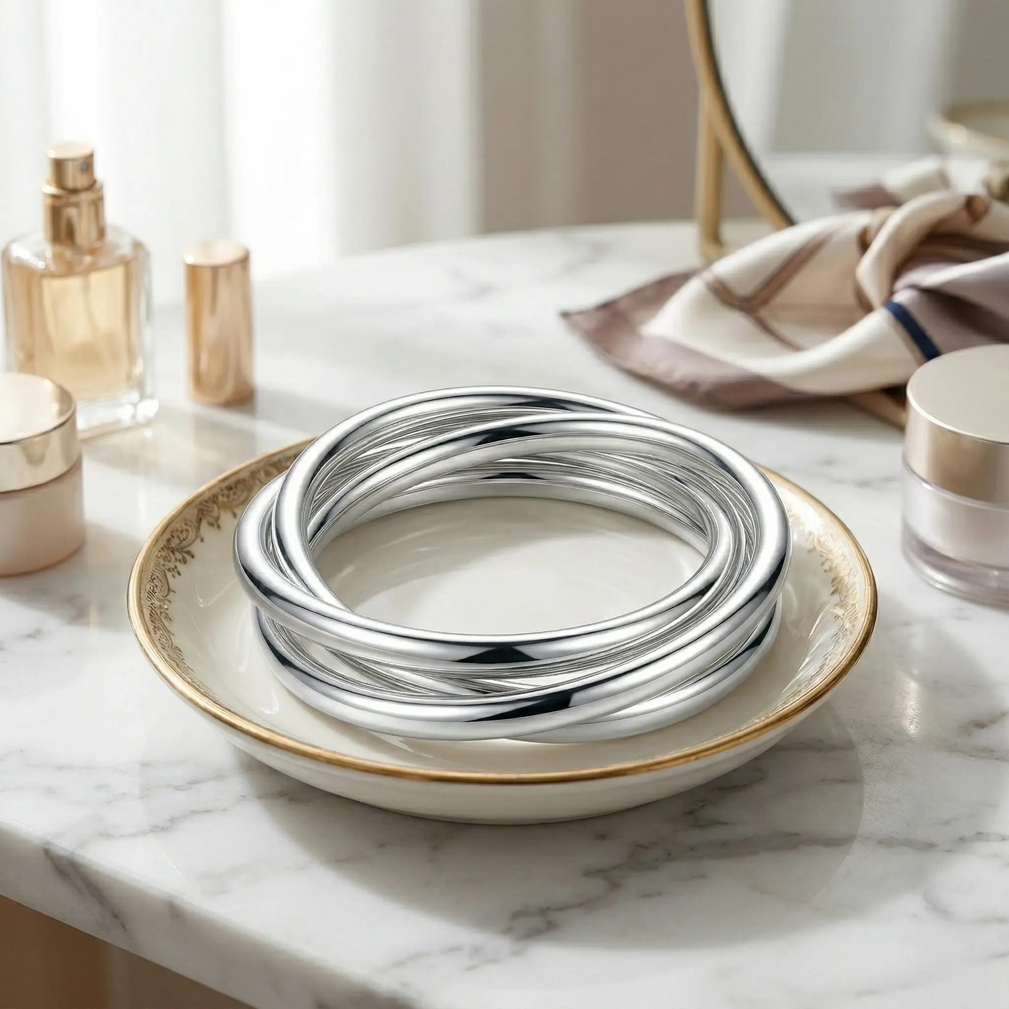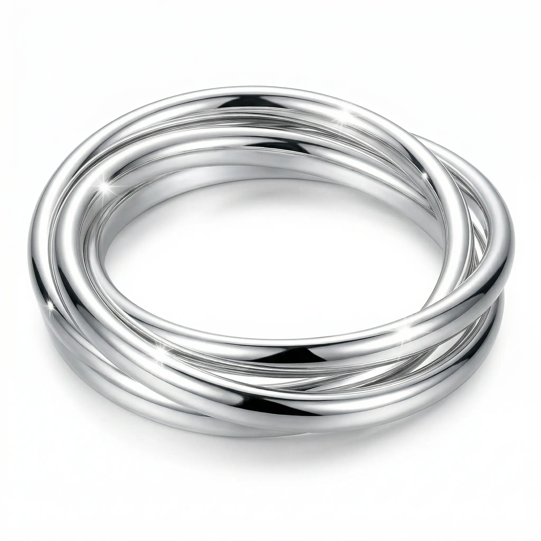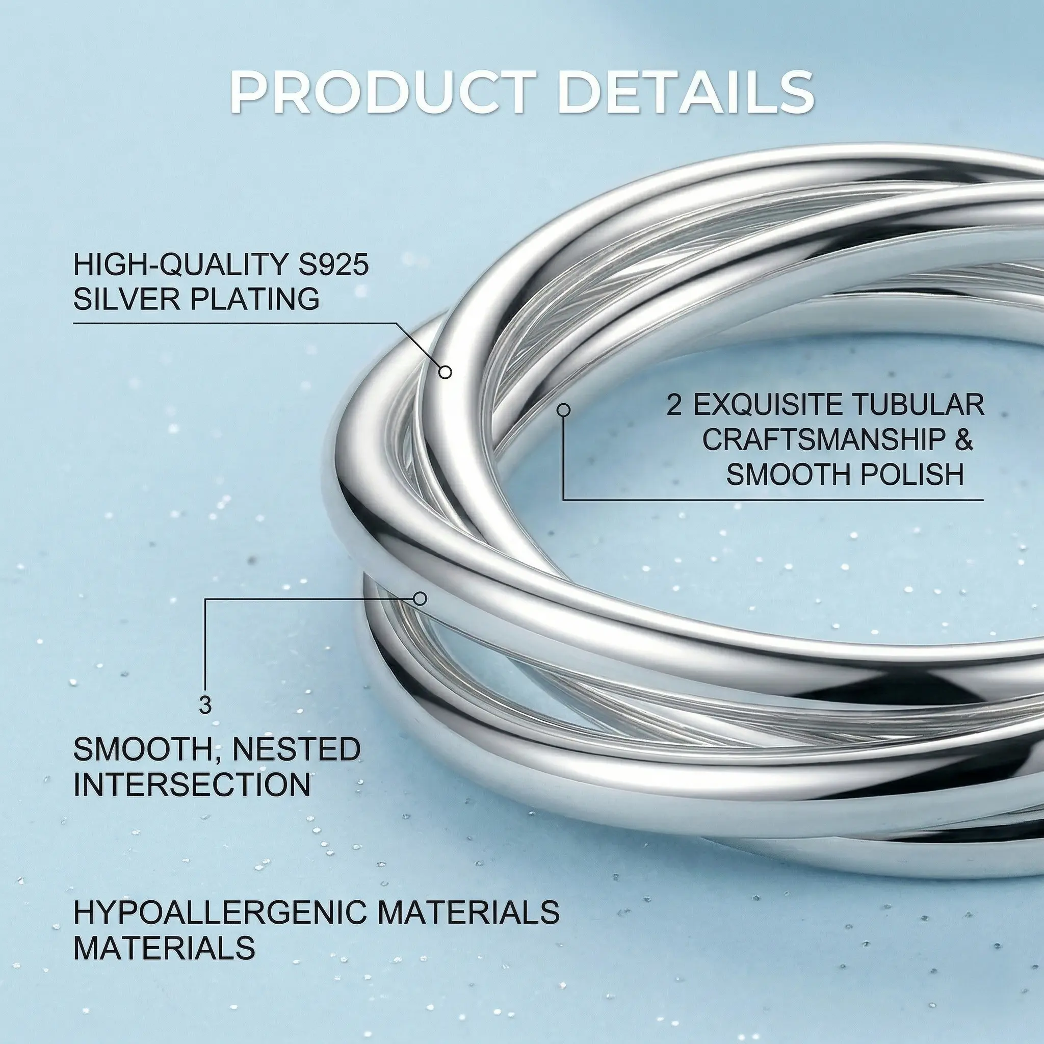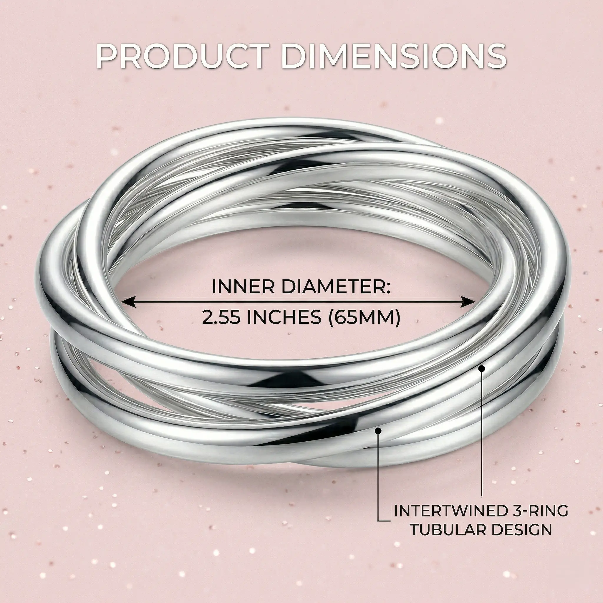 1. EXQUISITE INTERTWINED DESIGN Features three interlocking, perfectly round tubular rings that elegantly roll and intertwine on your wrist. This classic, petite, and cute triple bangle design adds a touch of sophisticated shine and movement to any outfit, seamlessly transitioning from casual daywear to formal evening elegance.