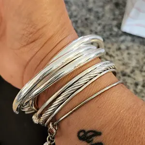 4. IDEAL DIMENSIONS & EFFORTLESS FIT With a precise inner diameter of 2.55 inches (64.7mm), this slip-on bangle is perfectly sized to fit the wrists of most women and teen girls. The unique rolling nature of the three intertwined rings allows the bracelet to glide smoothly and effortlessly over your hand for a comfortable fit.