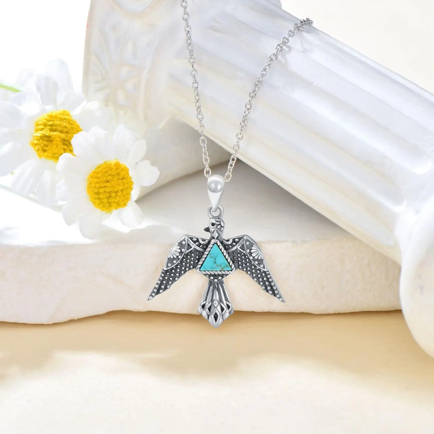 The thunderbird necklace is made of real 925 sterling silver. Environmental,Nickel and Lead Free, Hypoallergenic.No irritation to the skin.It makes for quite a comfortable fit for people with sensitive skin, and it will not make your skin green or black.