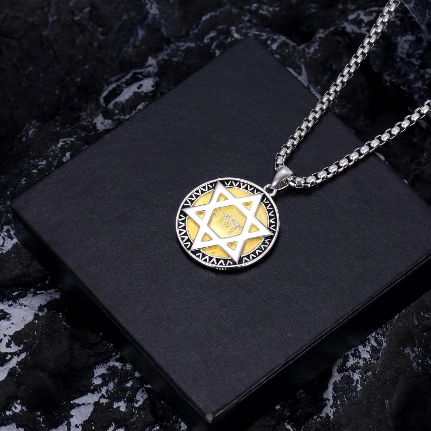 Unite faith and tradition with our sterling silver Star of David necklace featuring the sacred Hebrew letters YHVH (יהוה), representing the divine name of God. Wearing this jewish star necklace serves as a constant reminder of one's faith. It symbolizes protection, identity, and a deep-seated connection to God.