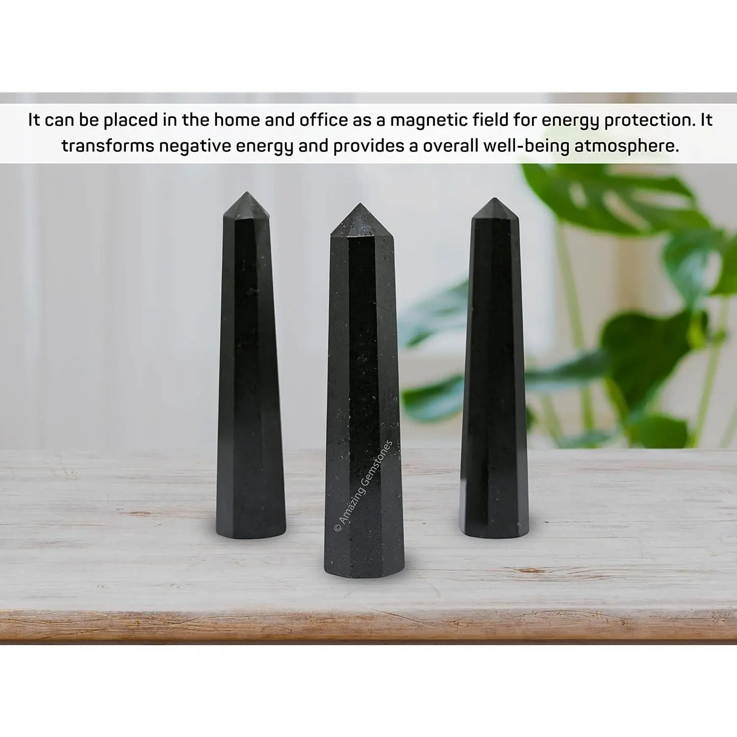 Black Tourmaline Crystal Tower will uplift and purify the energy (if its point is not damaged), so you can place it in any area that needs to be re-energized with strong energy.Length of this tower / wand / obelisk / point is 2" inch to 3" inch (5cm to 7.5cm) & width is 0.75 inch (2 cm).