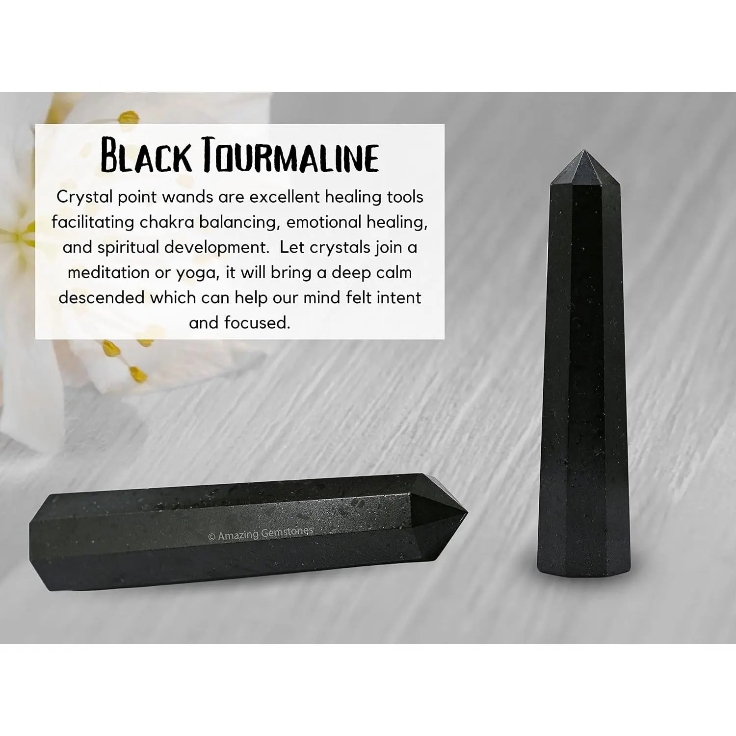 Black Tourmaline Crystal wand configuration enhances the metaphysical and healing properties of the source crystal.A crystal point is a powerful crystal tool.When placed facing away, the crystal point directs energy outward.