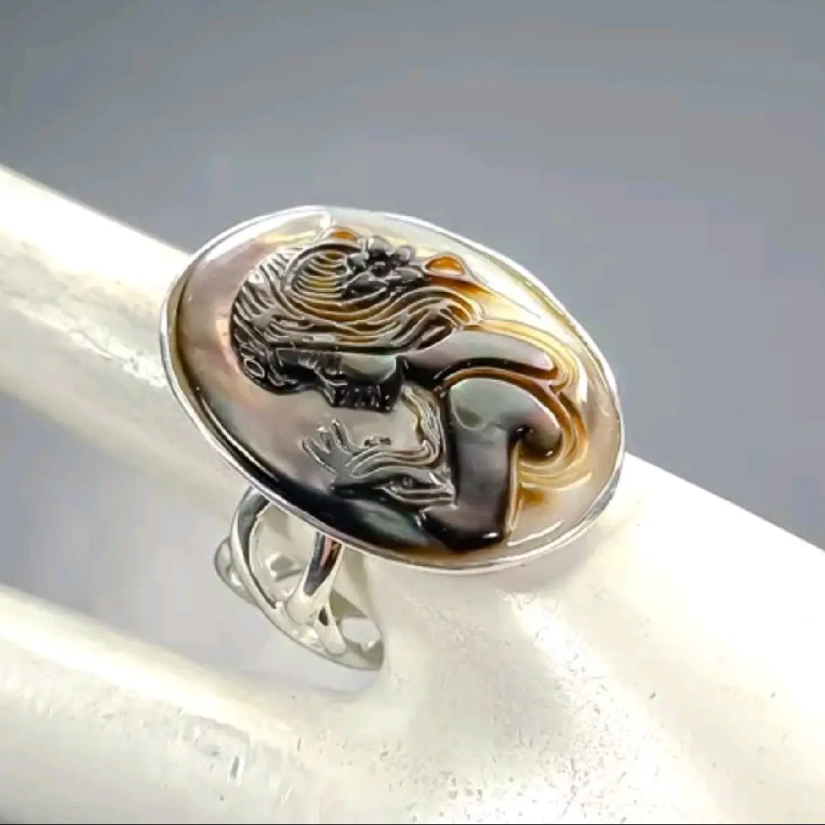 Cameo Shell Gemstone Ring. This exquisite piece features a stunning natural