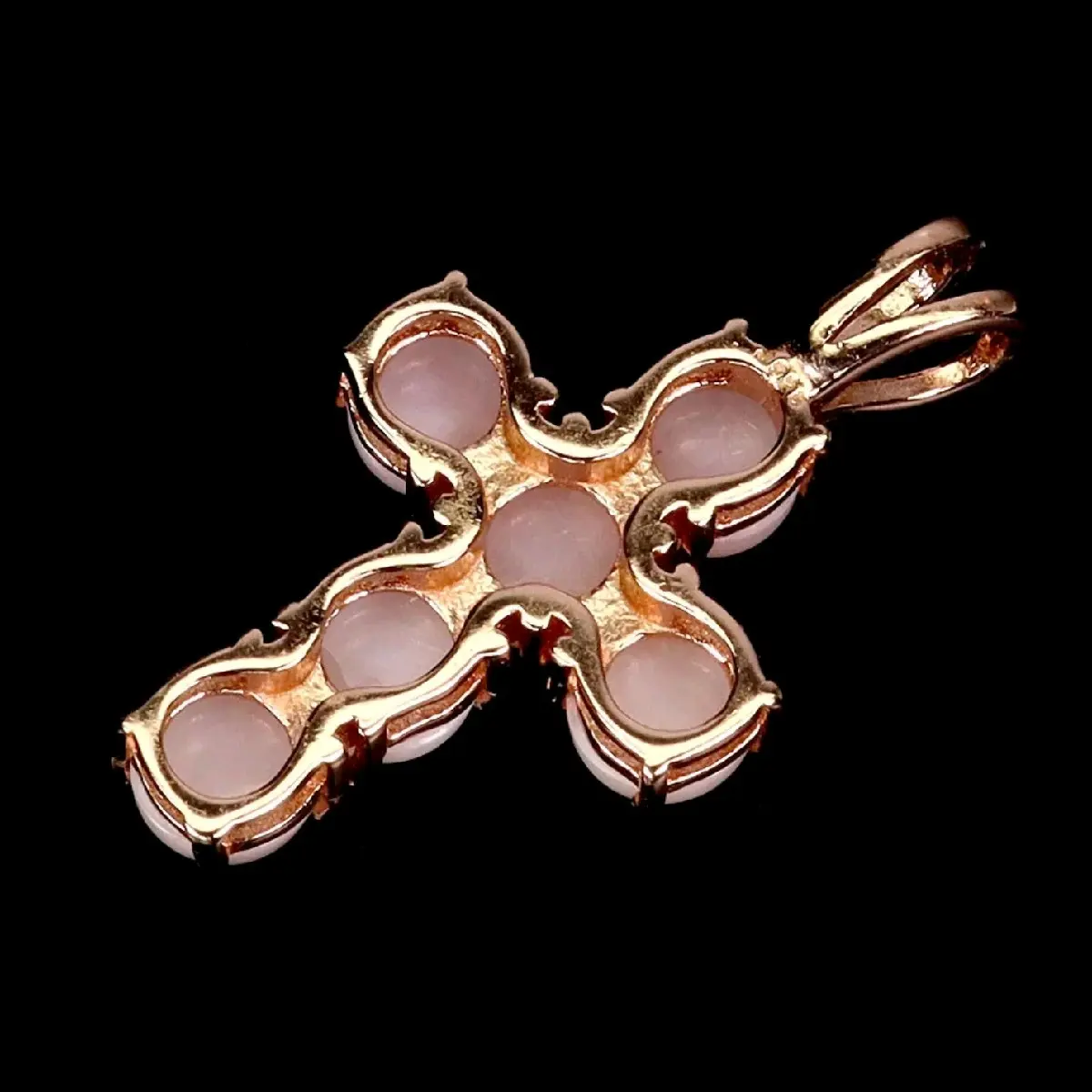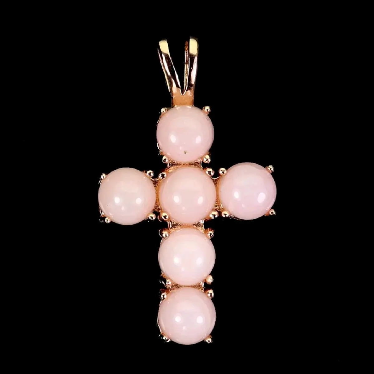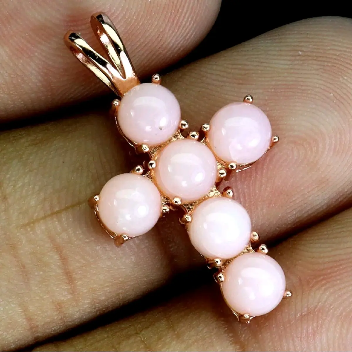 Rose Gold Plated Sterling Silver Opal Cross Necklace Pendant with Natural Pink Opals and Gold Finish