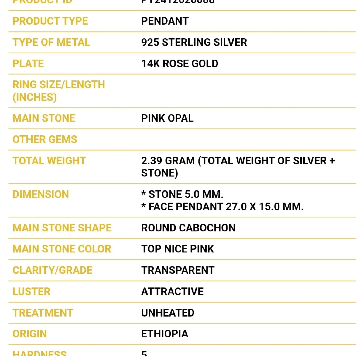 * Natural Pink Opals: The natural pink opals provide a beautiful and unique aesthetic, enhancing the overall appeal of the necklace.