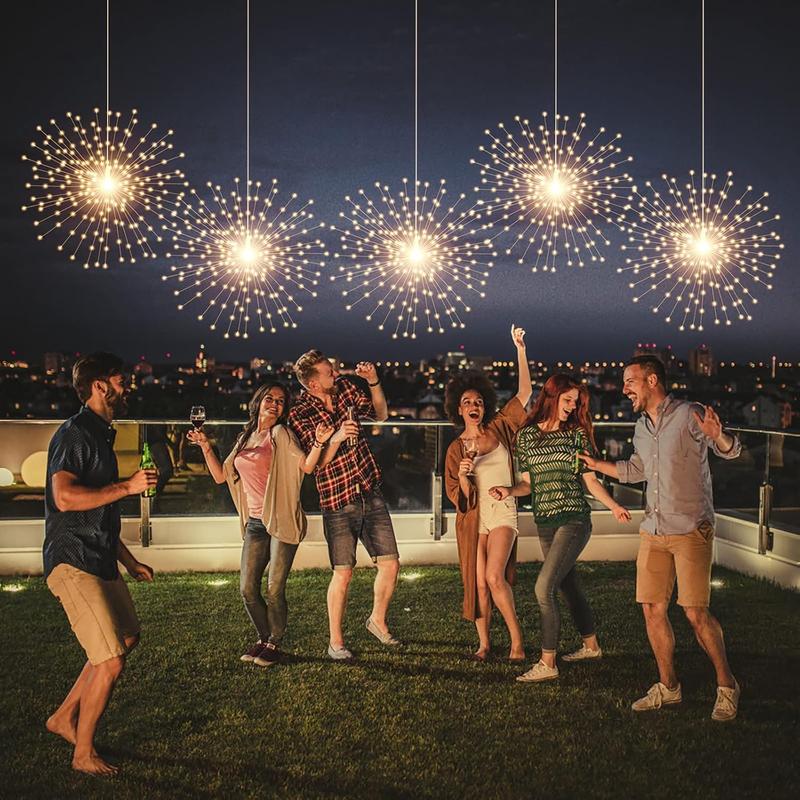 【Widely Applicable】The solar panel of the fireworks light is connected to the copper wire light string through a screw port and can be detached for charging. The solar star lights can be used indoors to decorate your Christmas tree, bedroom, wedding venue, cafe, windows, and as night lights, outdoor decorative lights, corridor lights. Perfect for Memorial Day, Christmas and other holiday decorations with fireworks effect to create a romantic atmosphere.