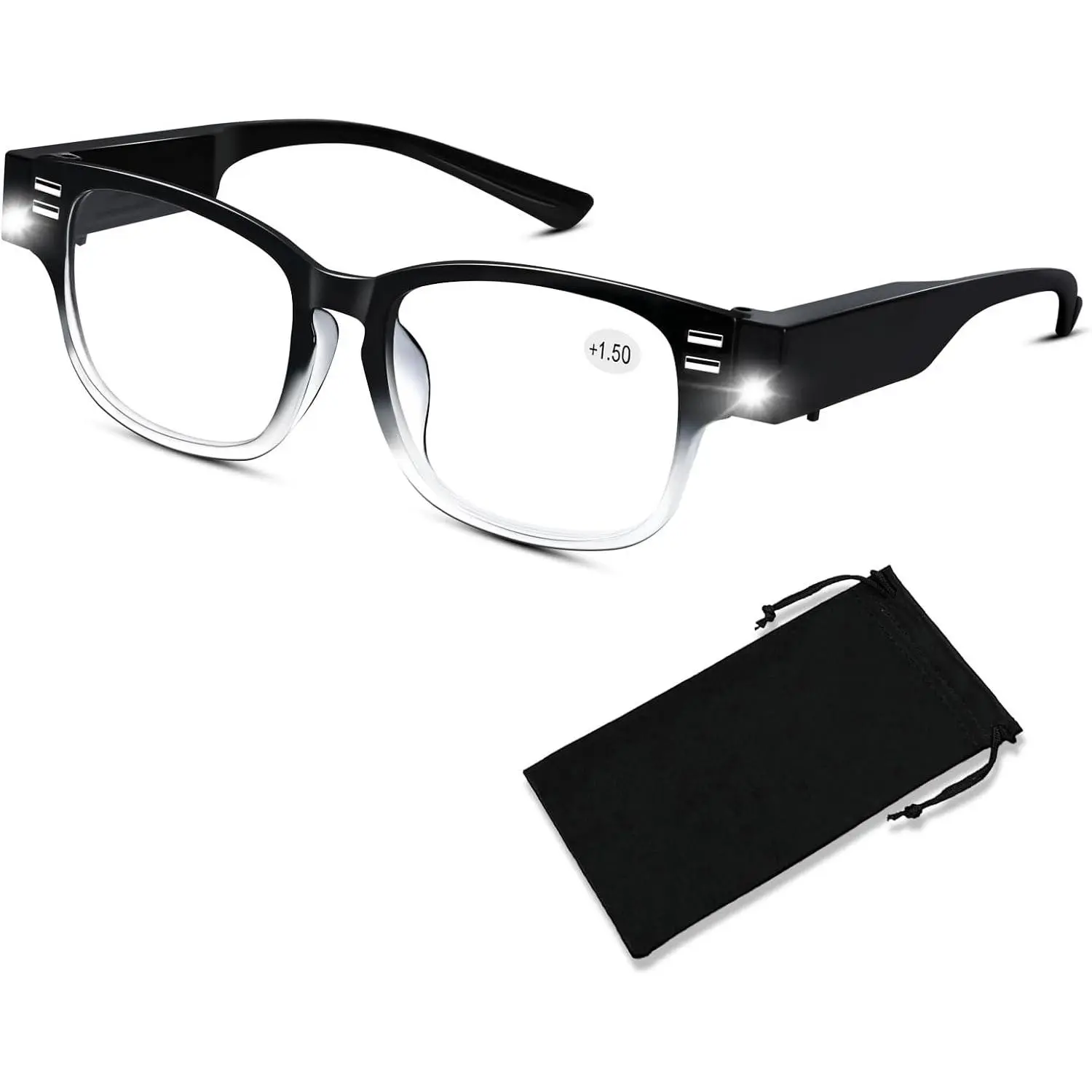 ·[Reading Glasses with Lights in the Frame] The magnifying glass for reading with lightweight plastic frames flexible spring hinges and temples, and an ergonomic design, can reduce the pressure on the nose.suitable for long-time wearing.Reading glasses are easy to carry or store.Fashion lighted reading glasses help you to have a clear vision with or without the lights.