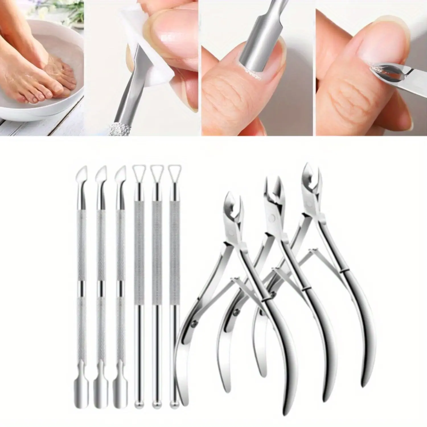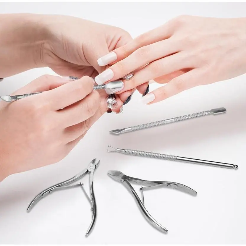 ·【9Pcs Cuticle Tools】You will get 9 pieces (3 sets) cuticle tools. This complete and professional cuticle kit includes 3 cuticle nippers, 3 cuticle pushers and 3 cuticle cutter. They are great beauty tools for manicures and pedicures.