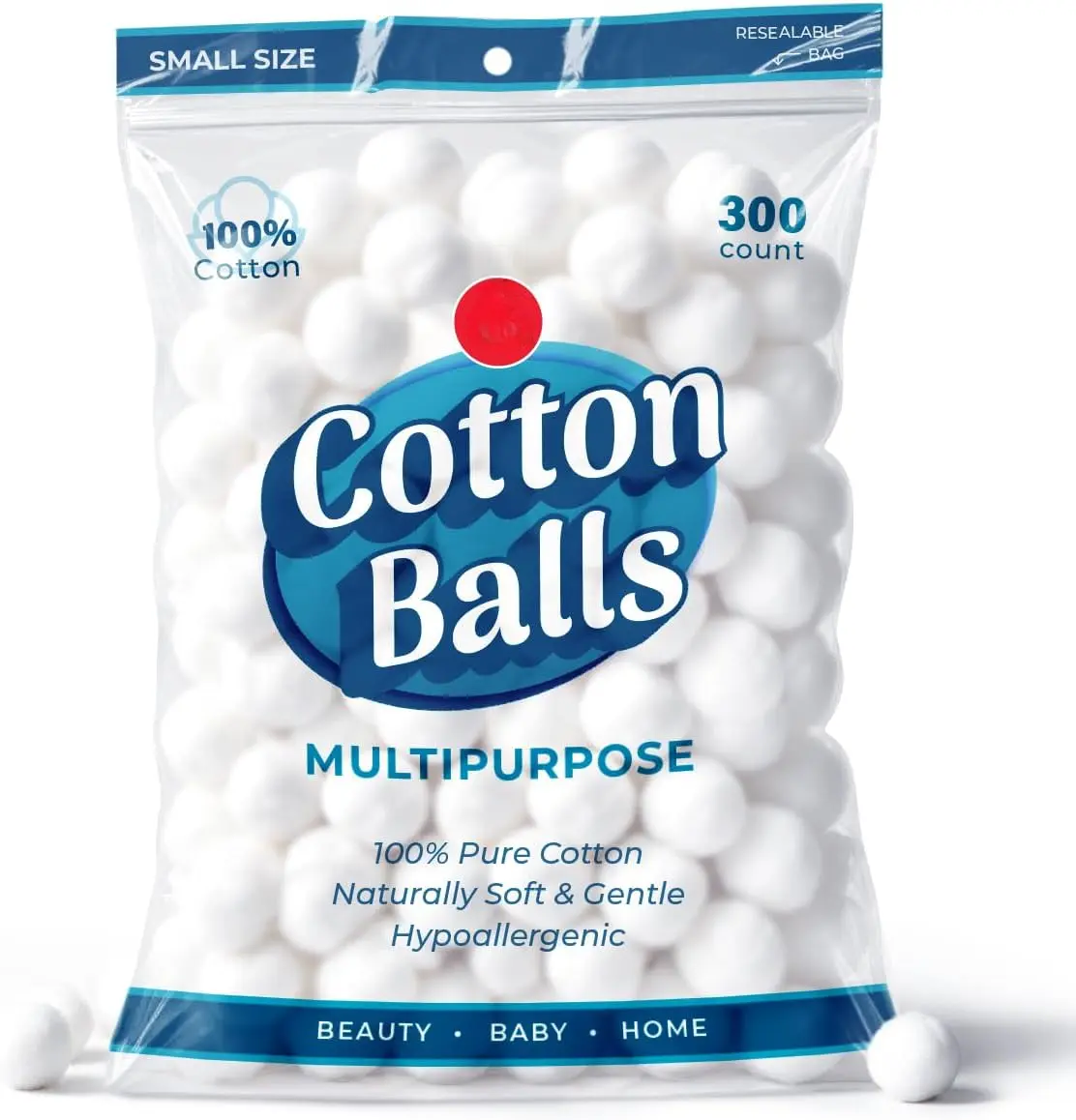300 Small Cotton Balls for Makeup, Nail Polish Removal, Pet Care, Applying Oil Lotion or Powder, Made from 100% Pure & Natural Cotton, Soft and Absorbent for Household Needs (300 Count) White