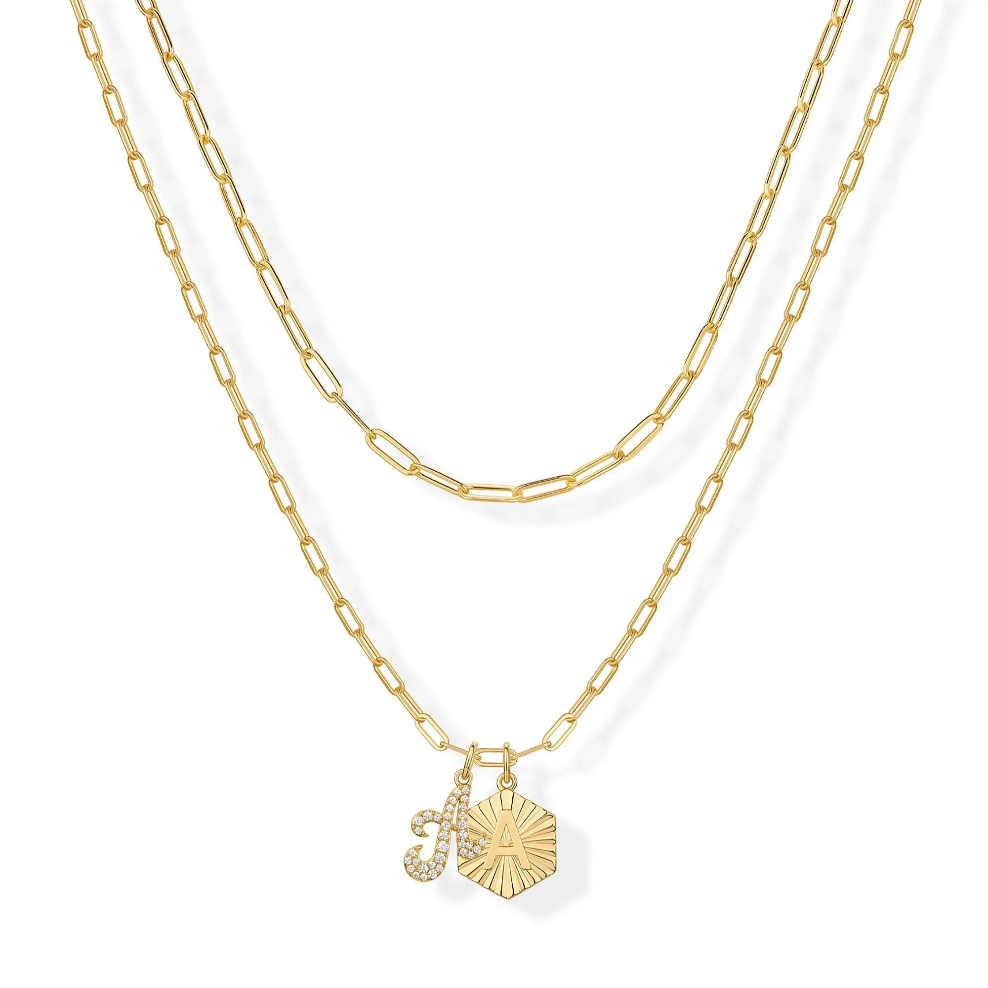 Nice quality double set with two initial pendants. Only thing is both chains could be longer. One fits like s choker and the other is not much longer. Can probably link together and wear as one.