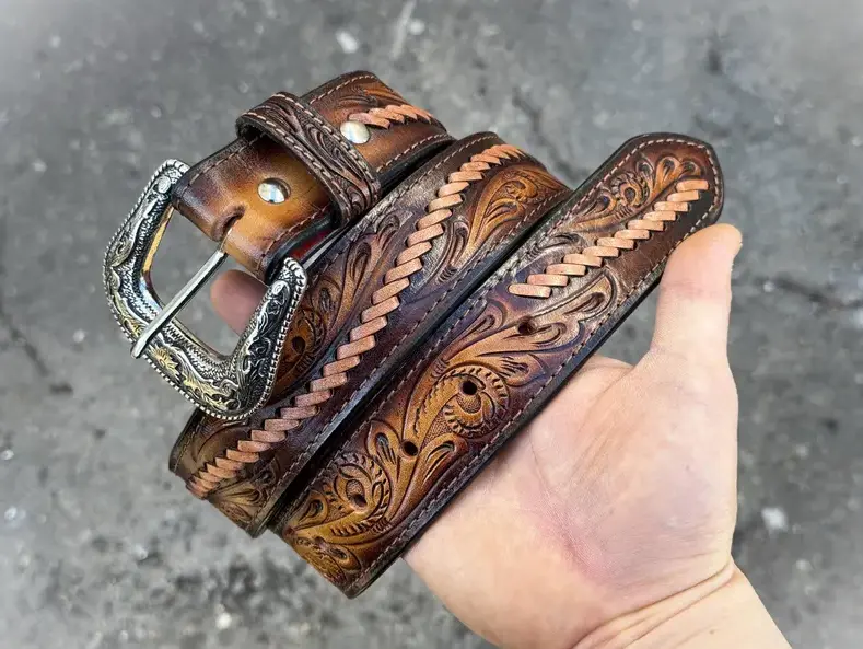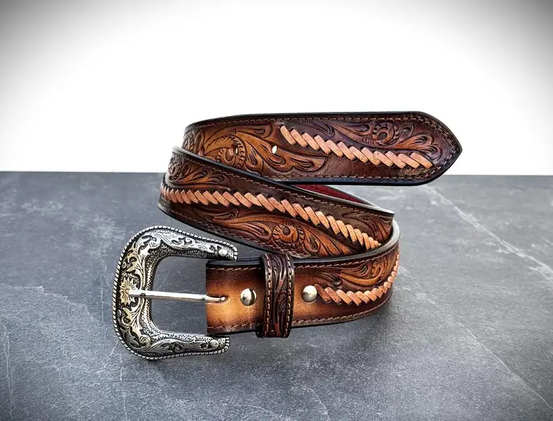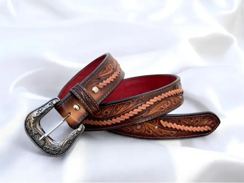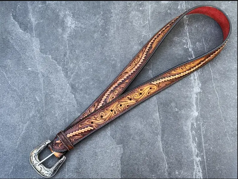 Personalized Western Handmade Belt Genuine Full Grain Leather With Buckle Embossed Belt Cowboy Handmade Cowhide Tooled Belt Valentines Day Gift - Meaningful Gift