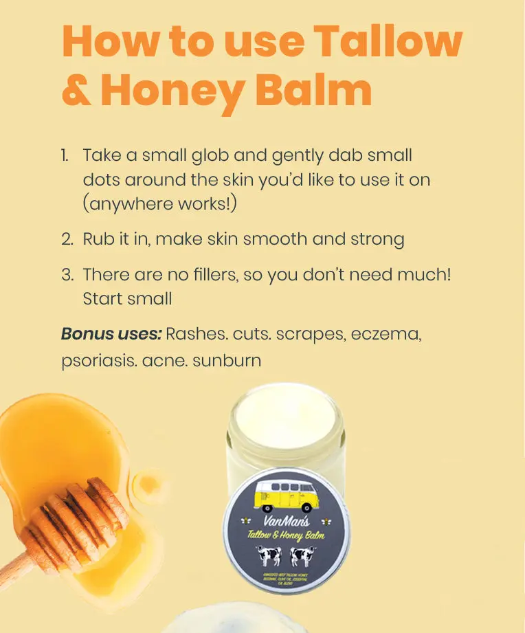 LOVE VanMan's Tallow & Honey Balm - Jumbo jar. My son introduced me to this product because even men are looking for natural products with non-toxic fillers. I feel confident using Tallow Balm because I have sensitivities to so many harsh ingredients that give me allergic reactions. I would recommend this product 100%, and the customer service is impeccable. They email back immediately and are very curious. I am always looking for clean products, hope they come out with lip balm and sunscreen!