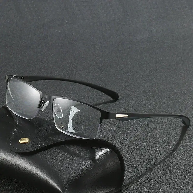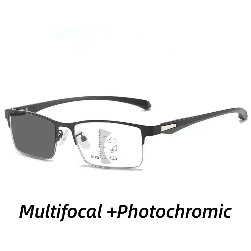 5. Progressive Multifocal Photochromic Reading Glasses Anti-blue Light Far Sight Glasses Men Half Frame Business Presbyopia Glasses